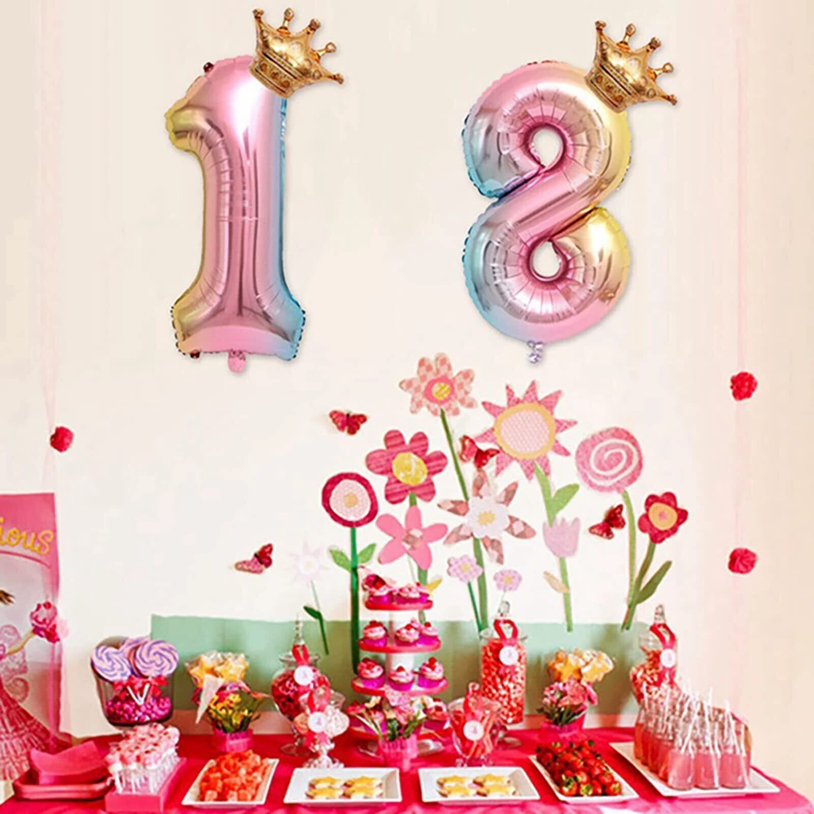 huaqiguo バルーン 数字 バルーン 大きい 0-9 虹色風 船バルーン ナンバー グラデーション 誕生日飾り 王冠 飾り付け アルミ風船 32インチ 大きい 数字 バルーン お祝い パーティー 誕生日 飾り付け 記念日(数字5)