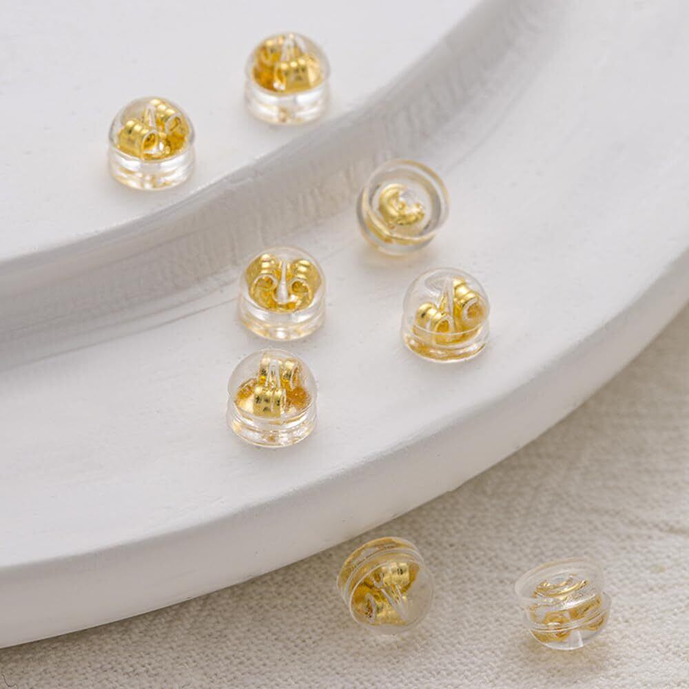 留め具 ピアスキャッチ シリコン ピアスロックピアス キャッチャー 18金 K18 金属アレルギー対応 落ちない 100個セット(ゴールド)