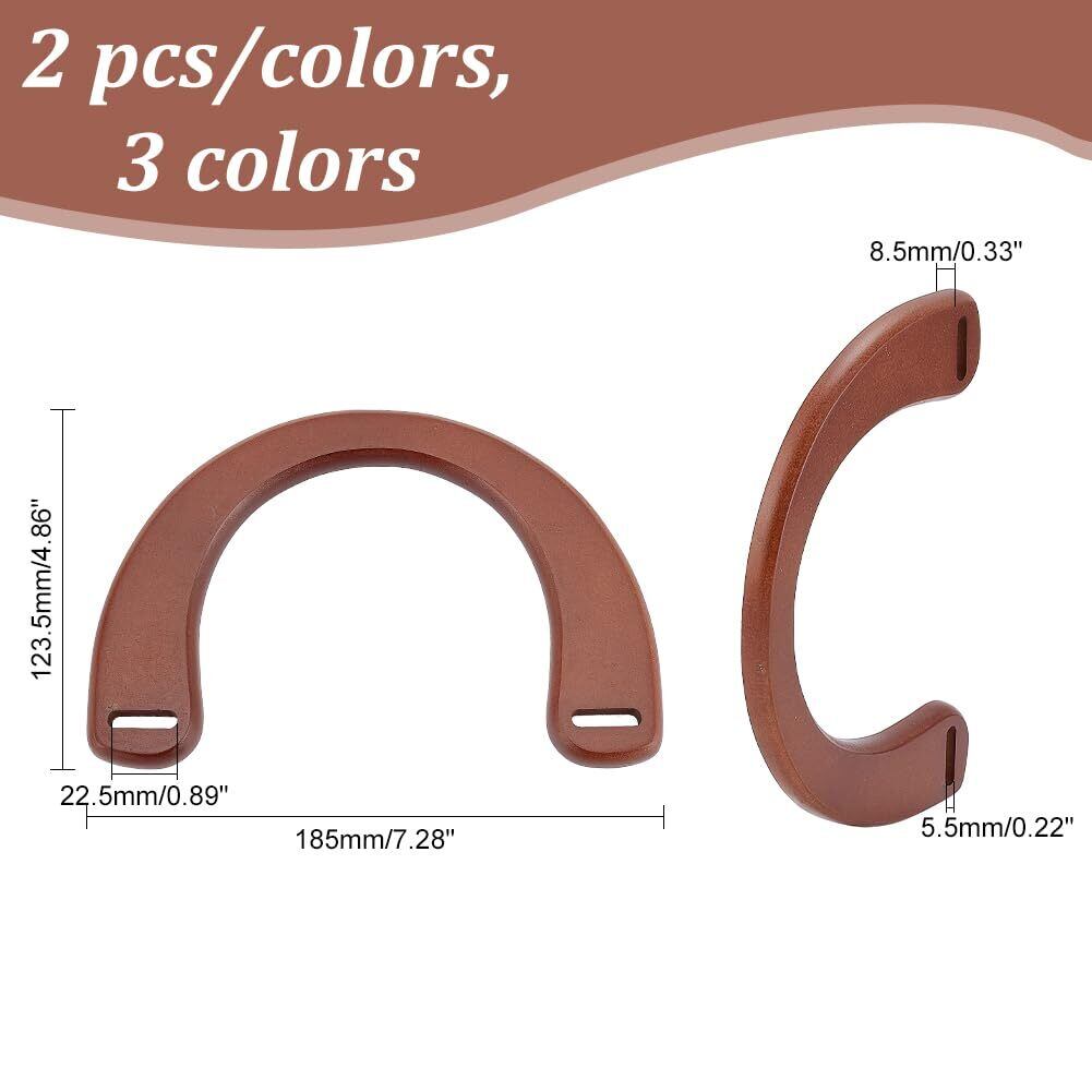 PH PandaHall 6個 木製持ち手 木工持ち手 バッグの持ち手 U形 木製 持ち手 取って ハンドメイド 修理 交換用 3色