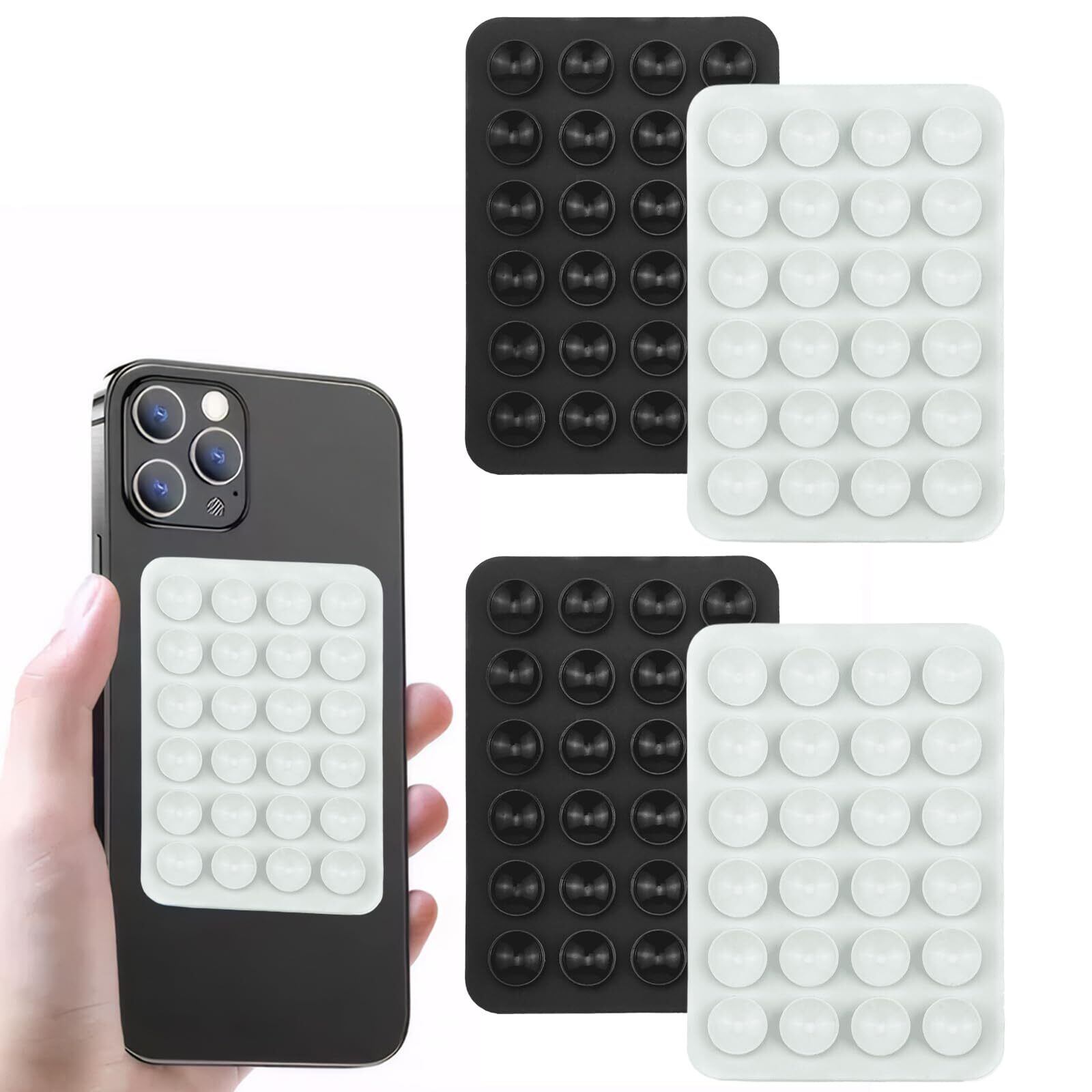 MAEXUS シリコン吸盤式携帯スタンド 粘着式携帯電話吸盤 (4枚入り) シリコン電話吸着マット 吸引式電話ケースマウント 自動車電話マウント 24 グレイン シリコン吸盤 携帯電話吸盤パッド すべての携帯電話モデルで動作します (ブラック/ホワイト)