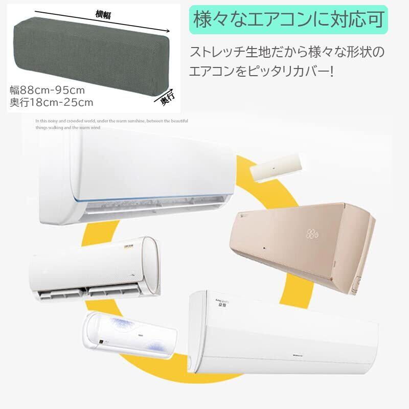エアコンカバー 室内機 壁掛け型 北欧 室内機用カバー 防塵 防湿 ホコリ対策 無地 洗える 伸縮 取り付け簡単 シンプル (グレー 88cm-95cm適応)