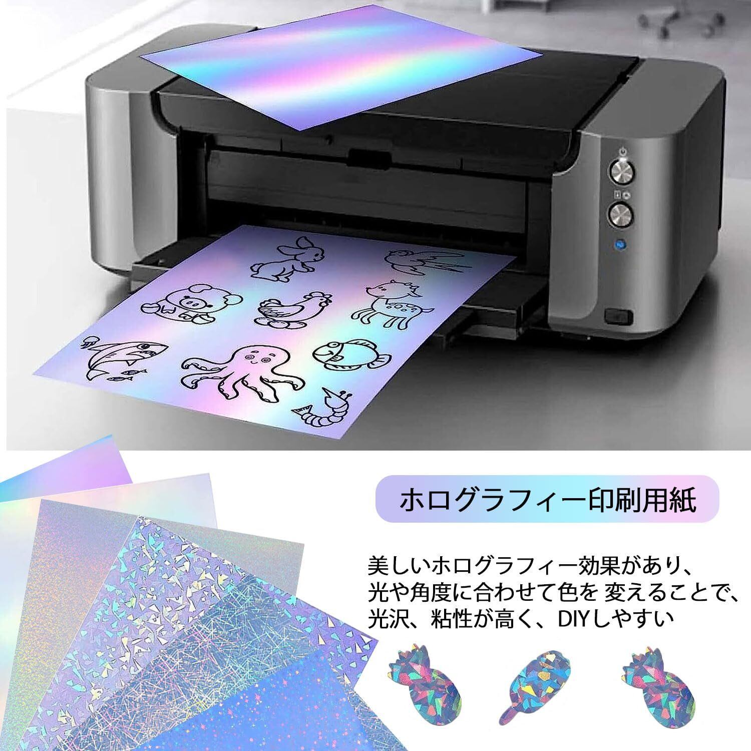 印刷できる ホログラムラベルシール 6種類 24枚セット A4サイズ ホログラフィック 印刷可能なビニールステッカー紙 防水、速乾性、自己粘着性、キラキラ かわいい DIYステッカー インクジェット/レーザープリンター兼用 | yankees