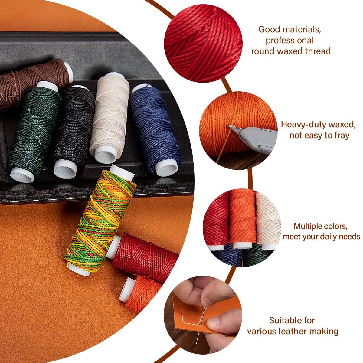 【4種類の縫い糸】黒、茶、緑、白の4色の縫い糸があり、ワックスでコーティングされているので、手触りがよく、丈夫で切れにくいです。