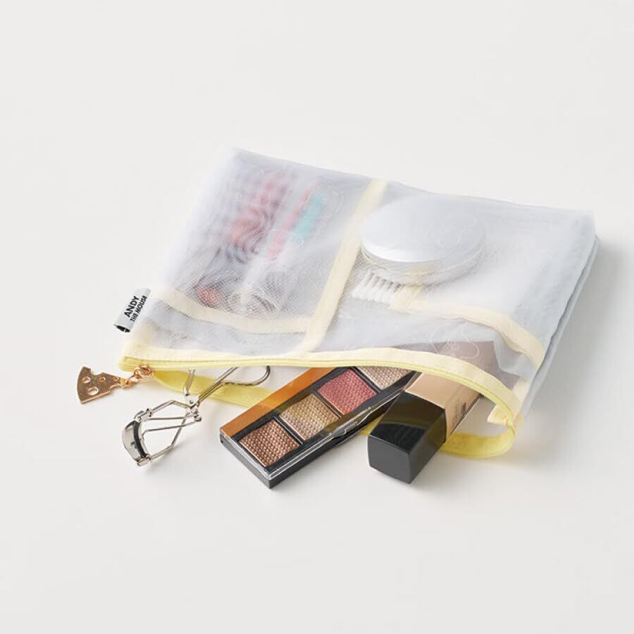 便利な仕切り付きのポーチで中身を綺麗に収納できるため、旅先で大活躍するアイテムです。メッシュになっているので中身が良く見えるのもポイントです。