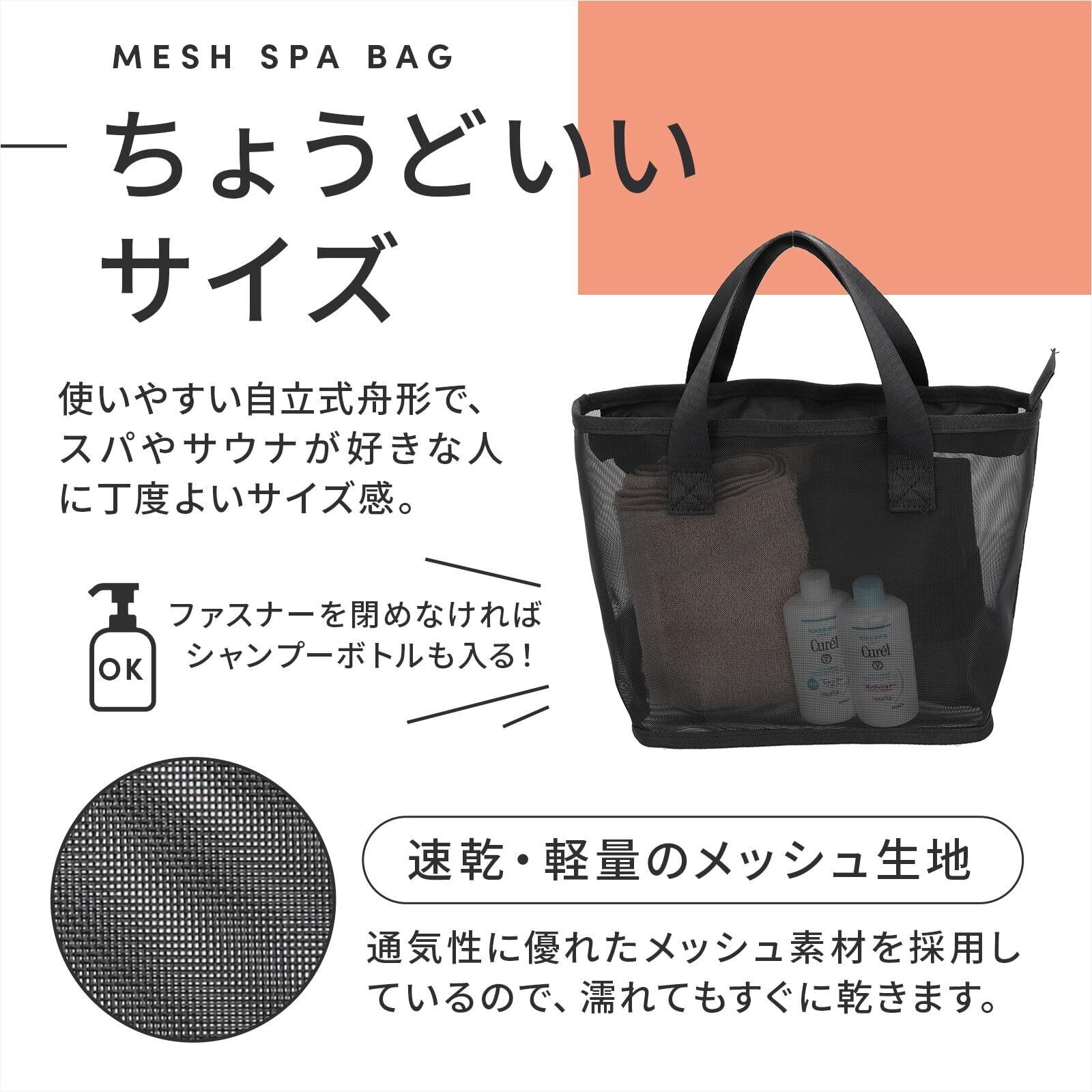 ・メッシュバッグ:幅:20cm(底)、28cm(上部) 奥行:10cm 高さ:19cmで浴室内に持ち込むにちょうど良く旅行のお供にも◎