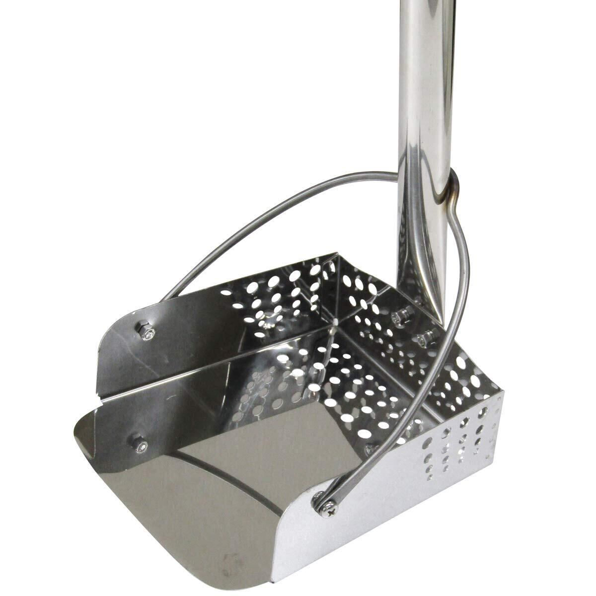 ●側溝やU字溝などの清掃に。 ●先端のR(丸み)で、U字溝にも便利。 ●新設計 4面多孔タイプで水はけのよい皿部。 ●皿だけでなくパイプもステンレス製。サビに強くお手入れ簡単。丈夫で長持ち。 ●皿部:縦183mm×幅158mm 全長:1000mm