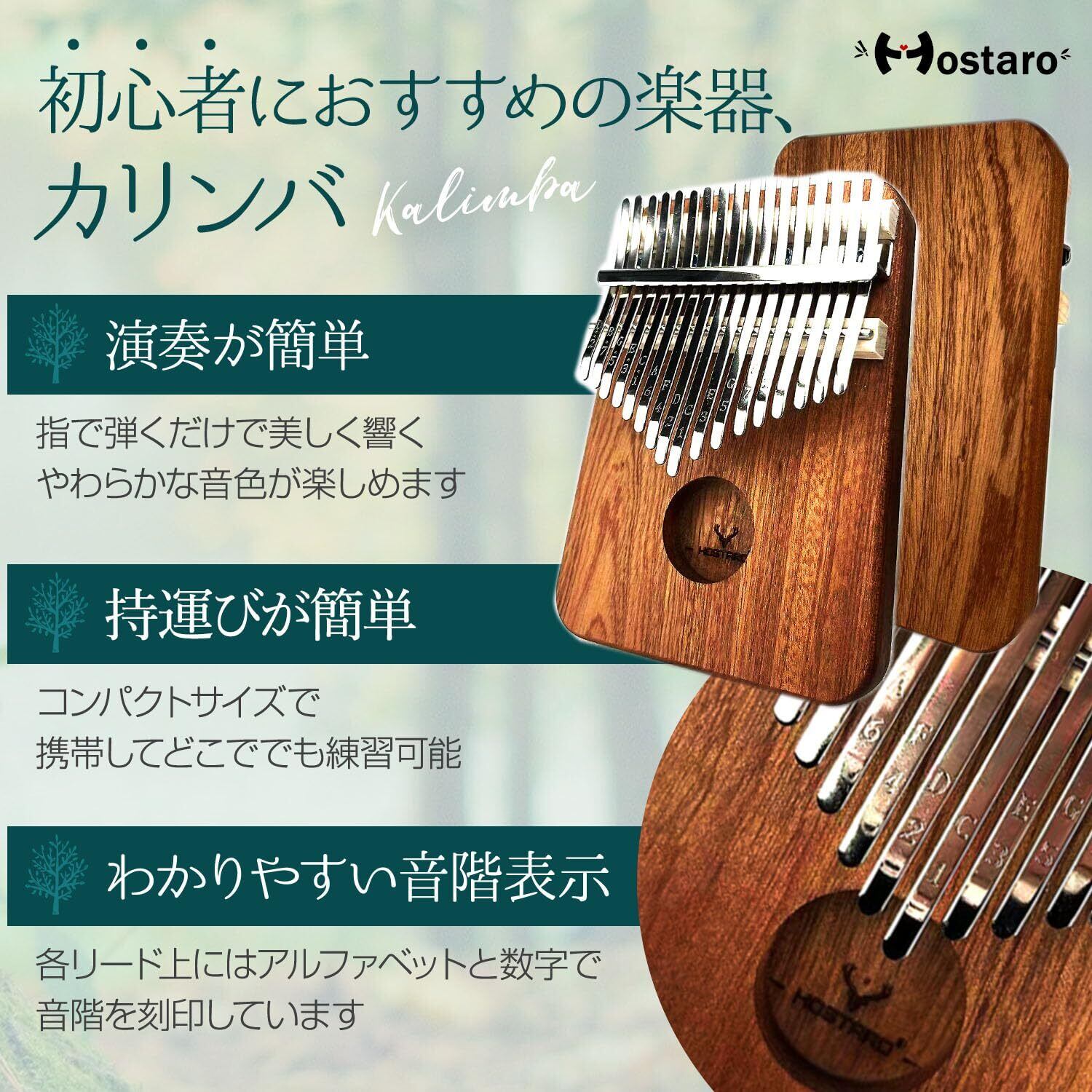 Hostaro カリンバ 親指ピアノ kalimba 17キー ソリッド 楽器 人気 保護ケース付き 初心者向 日本語マニュアル(エレガント)