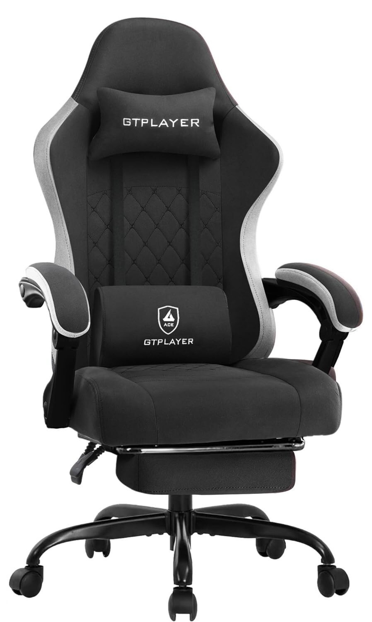 GTPLAYER ゲーミングチェア ファブリック オットマン 椅子 イス テレワーク 腰痛対策 pcチェア デスクチェア 蒸れない ソファーの座り心地 【安心の非再生ウレタン採用】【ポケットコイル採用】 『ダイア調に蝶の刺繍のデザイン』LR002-OG | yankees