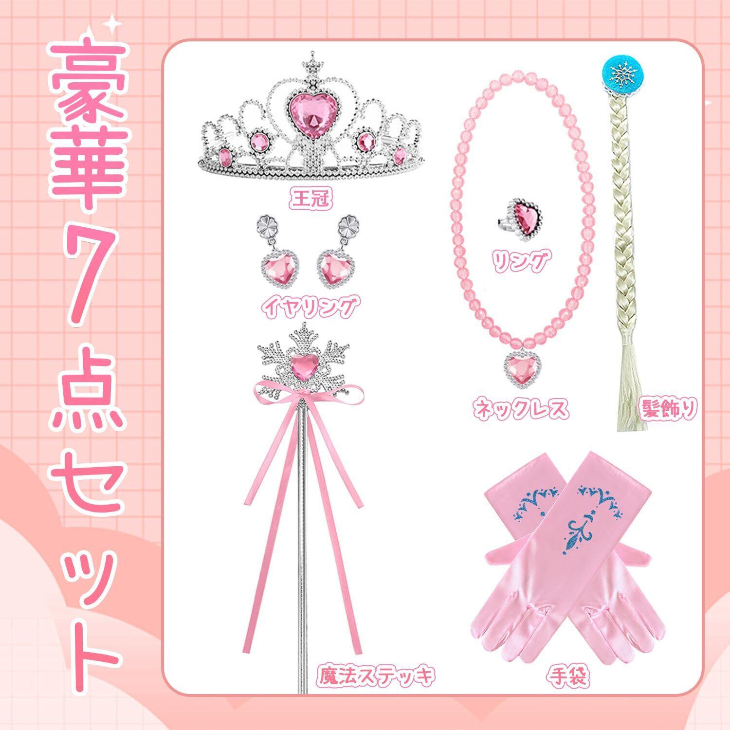 【付属アクセサリー】各ドレスには、プリンセスの王冠、魔法の杖、ネックレス、ブレスレット、リング、ヘアアクセサリーなどの小物が付属しています。これにより、小さな女の子たちは夢中のプリンセスにより近づき、役割演技の楽しさが増します。