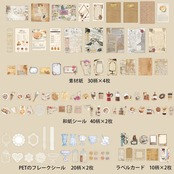 【大量なセット】パッケージには2パックのコラージュ 素材が入っており、各パックに80枚の和紙シール、120枚のデザインペーパー、20枚のクラフトタグ、40枚のPET製のフレークシールがあります。