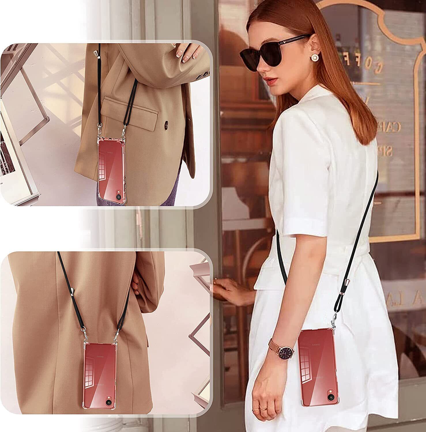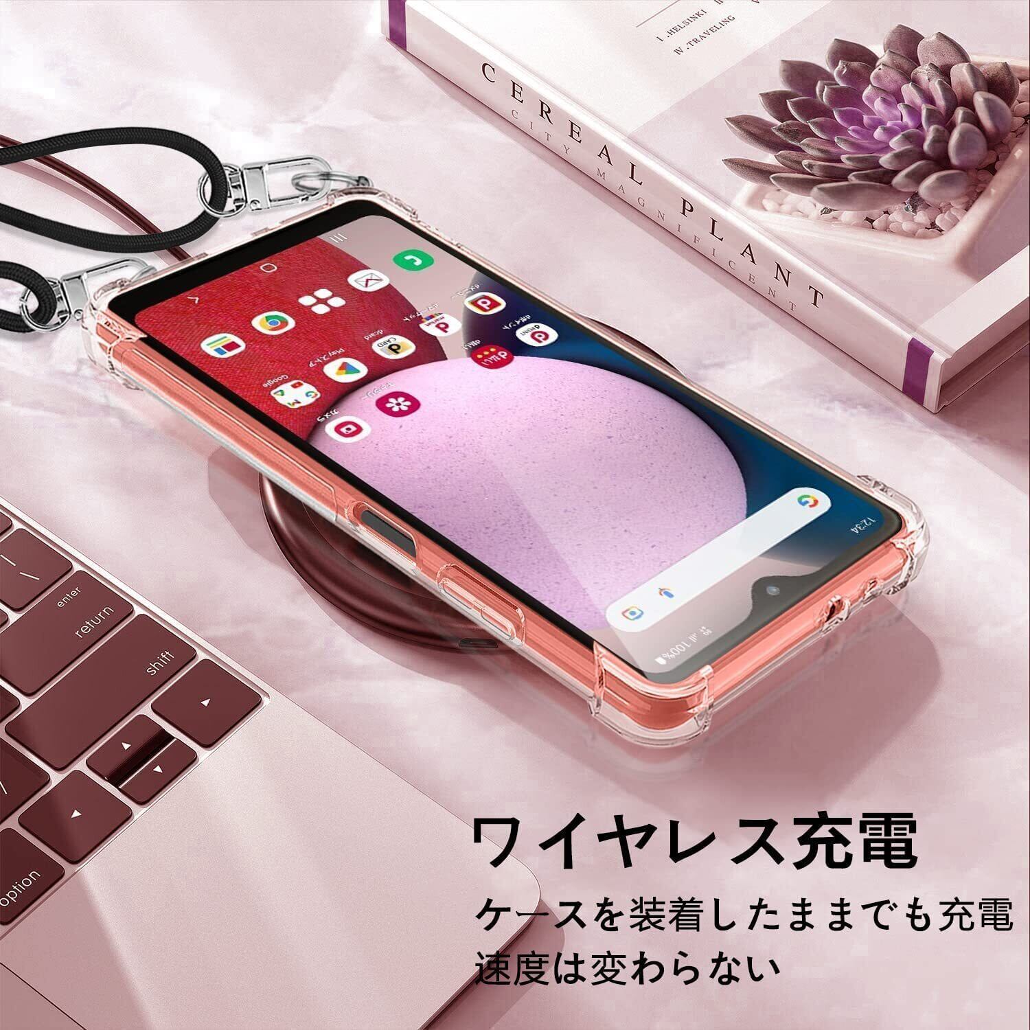 Galaxy A22 5G ケース クリア Galaxy A22 5G SC-56B スマホケース カバー ショルダー 肩掛け 斜めかけ 縄掛けケース 縄掛け 透明 TPU ストラップ付き 薄型軽量 1.5MM 取り外し可能 電波影響なし 指紋防止 落下防止 ワイヤレス充電対応 柔軟で変形しない 【縄掛け-ブラック 】