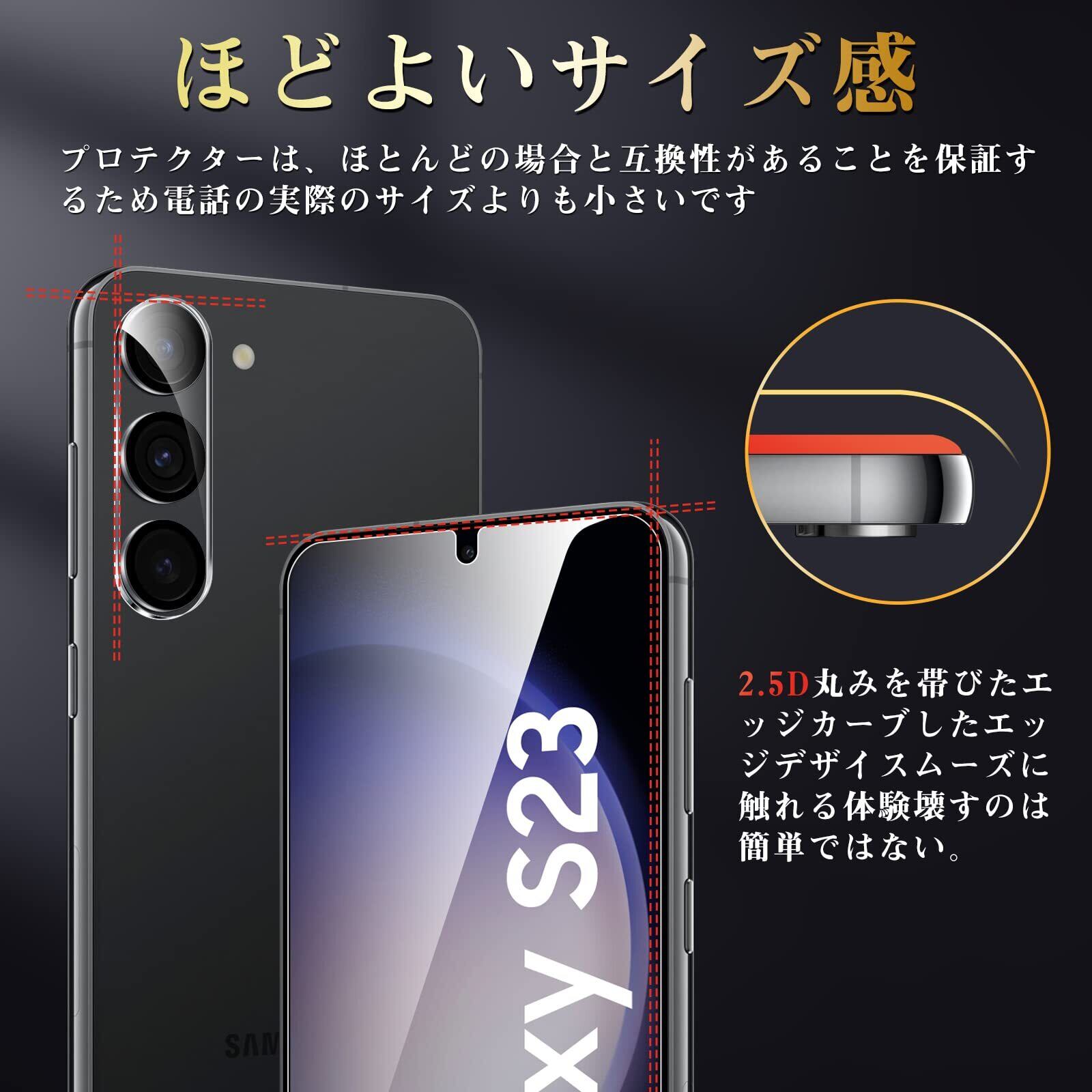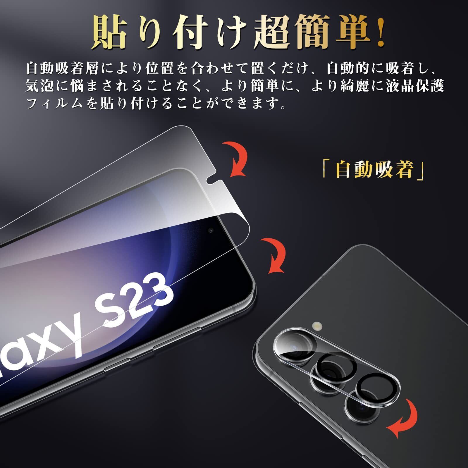 Galaxy S23 ガラスフィルム 【SC-51D/SCG19 対応】 Galaxy S23 フィルム (2枚) + カメラフィルム (2枚) 旭硝子製素材 硬度9H 高透過率 指紋防止 気泡防止 自動吸着 ギャラクシー S23 保護フィルム