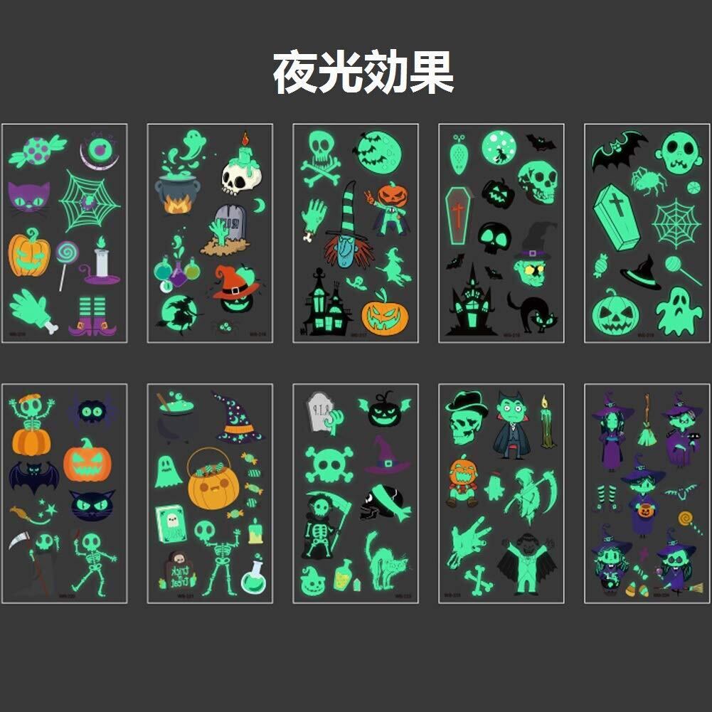 【パーティーで目立つ】タトゥーシール ハロウィン光る、幽霊のような輝き用、あなたのハロウィーンの衣装でこれらの不気味な入れ墨を着てください。 児童の誕生日のパーティーに適して、ハロウィーンパーティー、学校の活動。