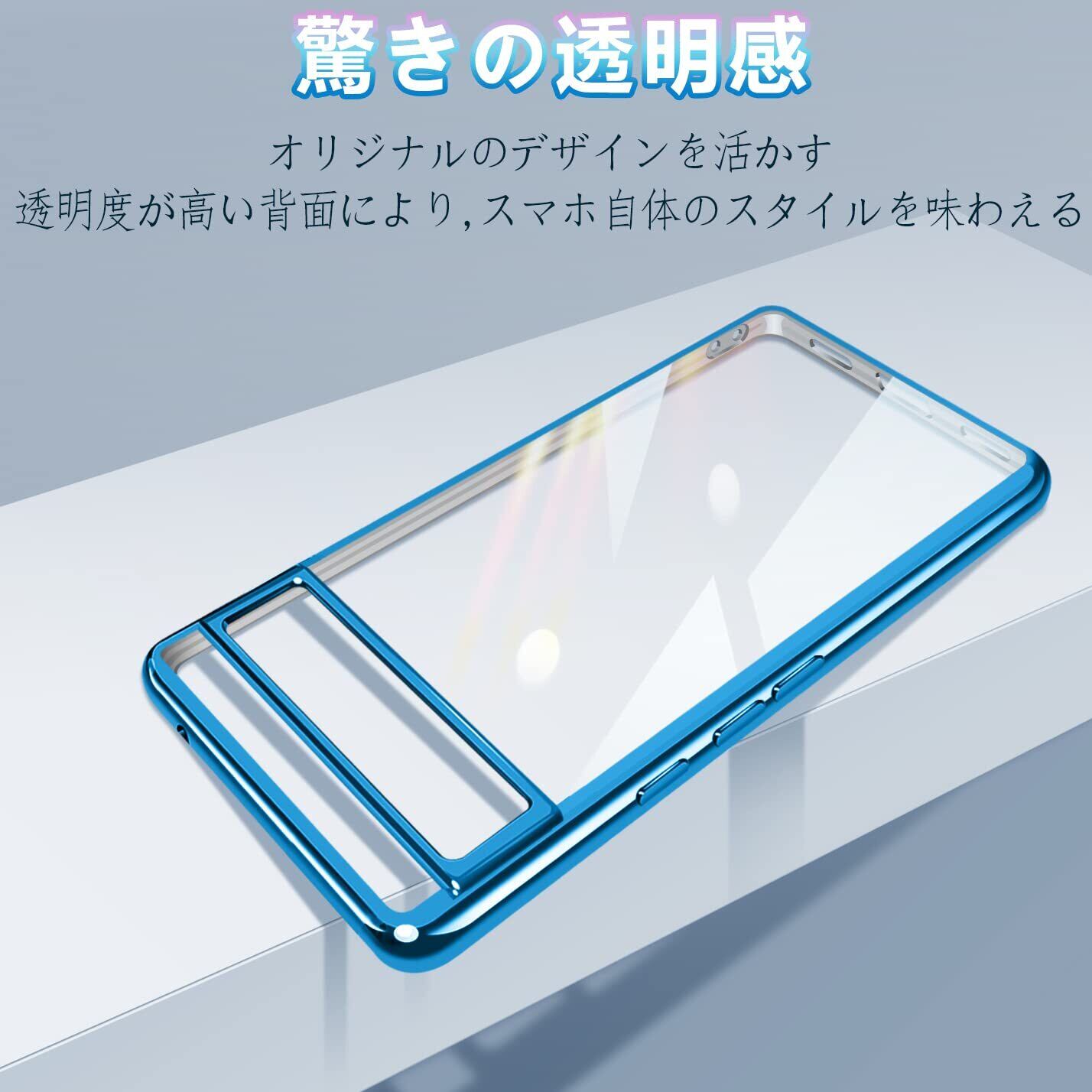 Google Pixel 7a ケース クリア 透明 ピクセル7a スマホケース カバー TPU 薄型 軽量 耐衝撃 メッキ加工 ソフトケース 人気 保護カバー(ブルー)