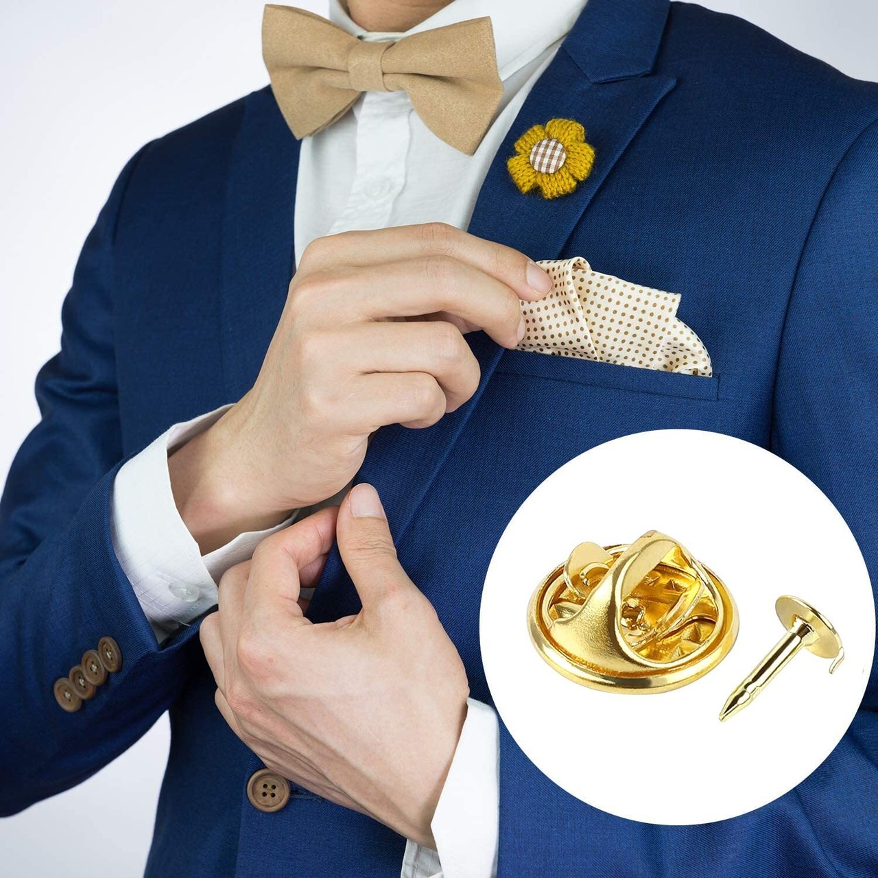 ピンバッジのピンバッチ バタフライ型留め具と土台の広い針 パーツ 金色50個セット