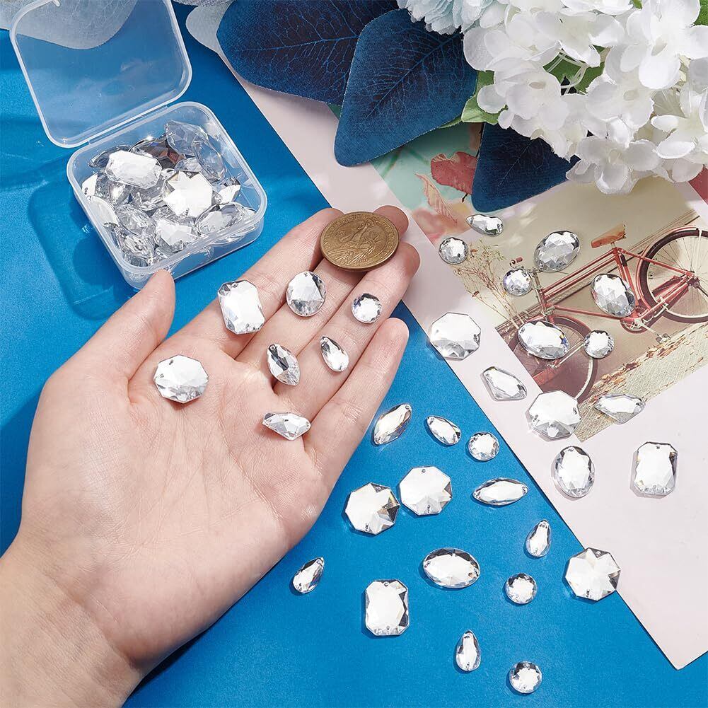 PH PandaHall 約70個 7種 ビジュー パーツ 2穴 アクリル ラインストーン 縫製フラットバック カボション デコ素材 手芸用 ジェリー用 アクセサリーパーツ装飾材料 クリア | yankees