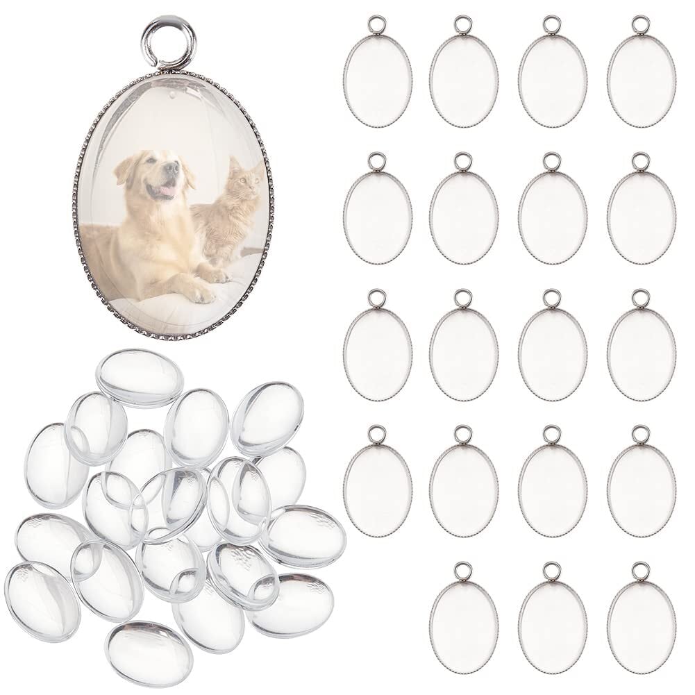 PH PandaHall 約20組 23x14x1mm 304ステンレス鋼 トレイ 透明 ガラスカボション ミール皿 カメオ台 レジン 台座 イヤリング ペンダント クリア チベット風 ジュエリー用 手芸用品 飾り アクセサリーパーツ 手作り ステンレス鋼色 | yankees