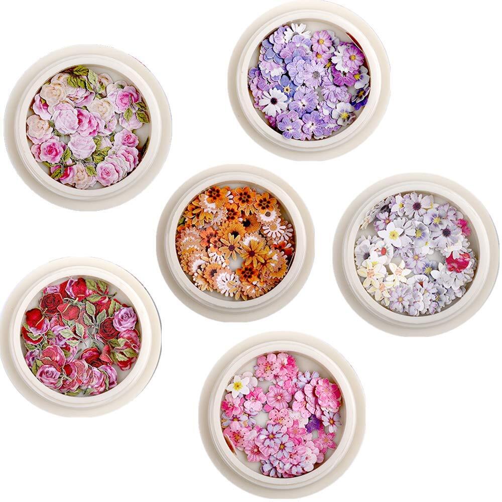 この6セットのネイルアートパーツは、3Dのホログラムデザインで、可愛らしい花のモチーフが特徴です。薄くて軽いデザインで、ジェルネイルやクラフトに ideial です。6個ずつのセットで、ネイルアートやクラフトアートに使えます。重さは10gです。