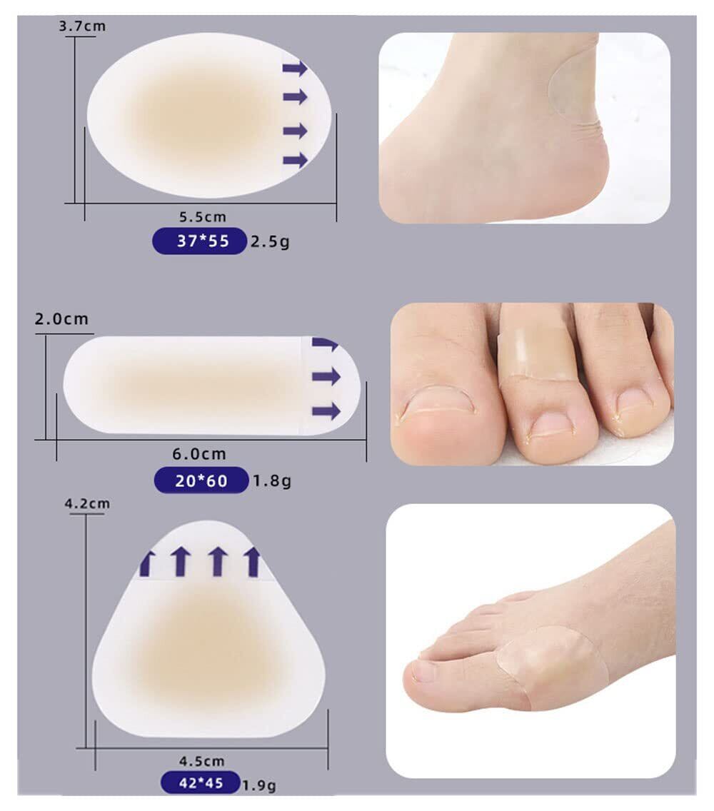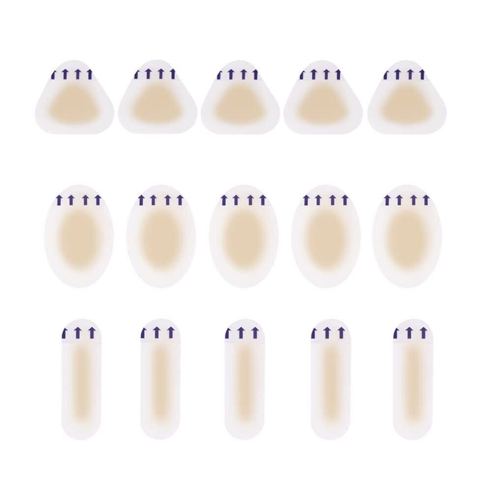 【商品仕様】素材:安全ゲル素材 ヒ-ル37MM*55MM×5本;20MM*60MM×5本; 45MM*45MM×5本。合計:3つのスタイル、15本;カラー:肌色。