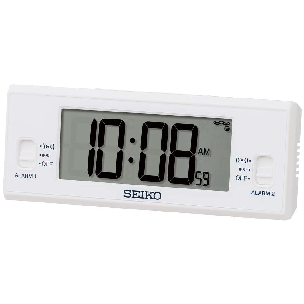 セイコークロック 目覚まし時計 置時計 デジタル 電波 白 48×123×30mm SQ321W