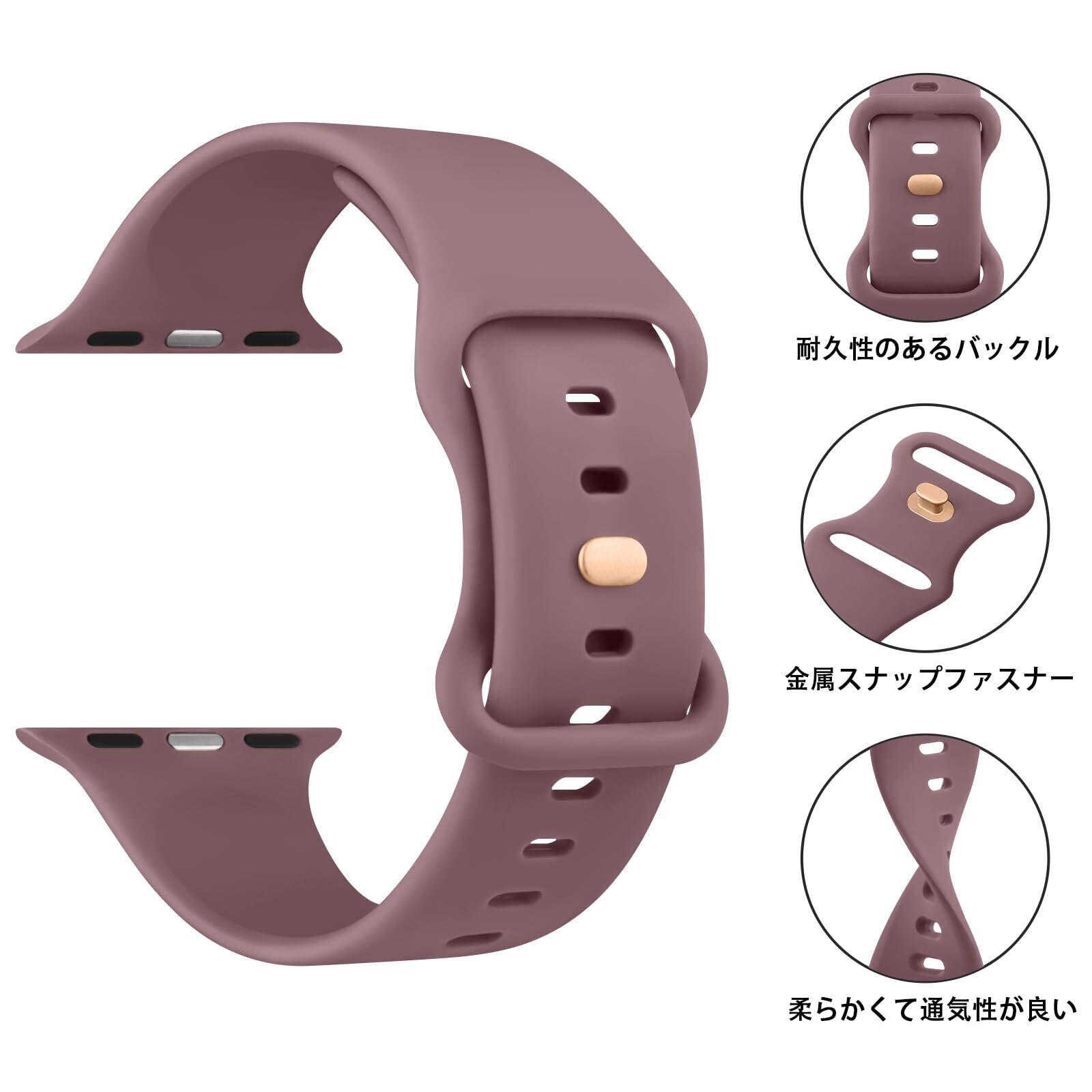 この Apple Watch バンドは高品質のシリコン素材で作られており、耐久性があり、柔らかく、肌にやさしく、軽量で、通気性があり、指紋防止、防水、防汗です。