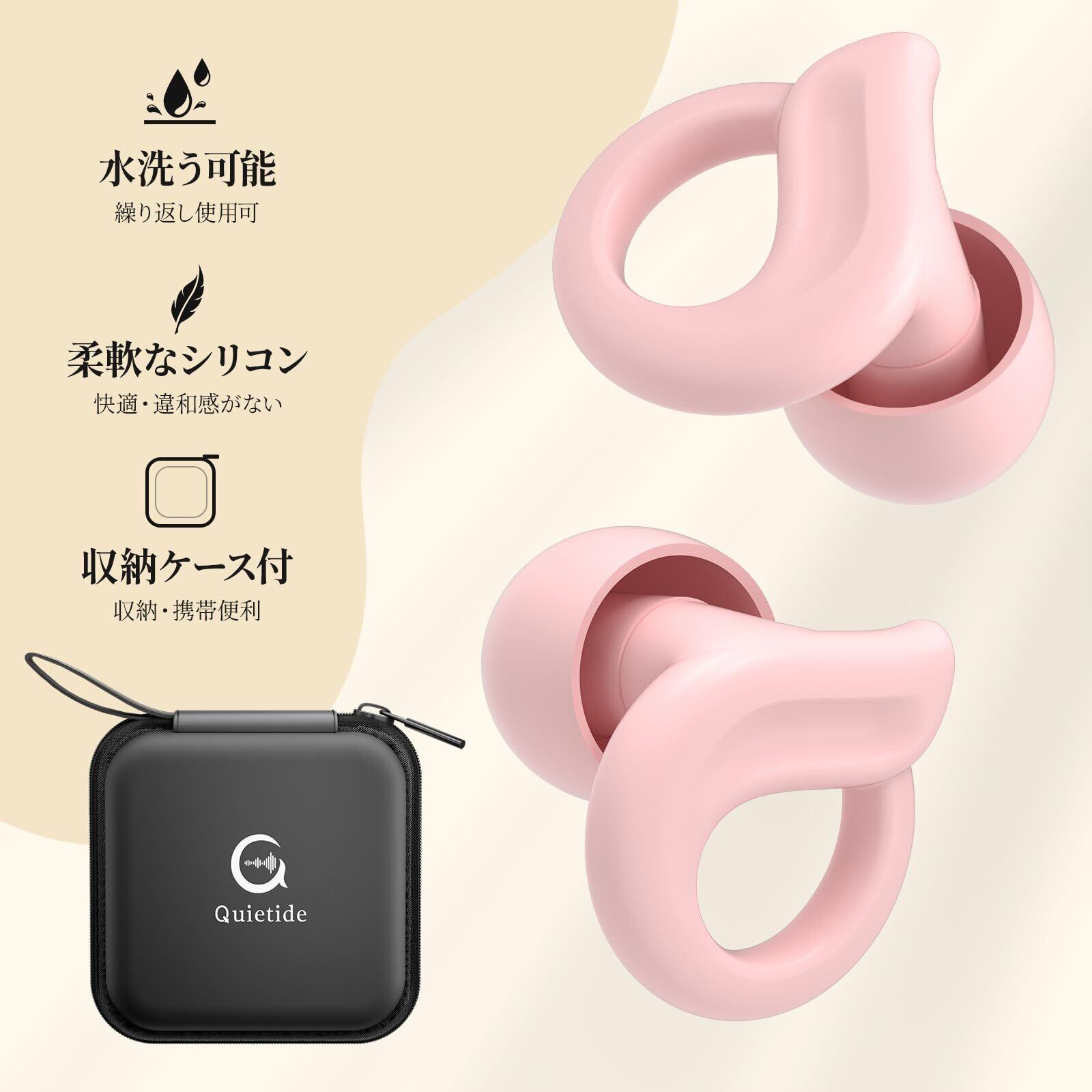 耳栓 睡眠用耳栓 安眠 防音 聴覚過敏 ノイズキャンセリングイヤープラグ XS/S/M/Lサイズイヤチップ付 収納ケース付き 繰り返し使える聴覚プロテクション 日本語説明書付 Q22 ピンク