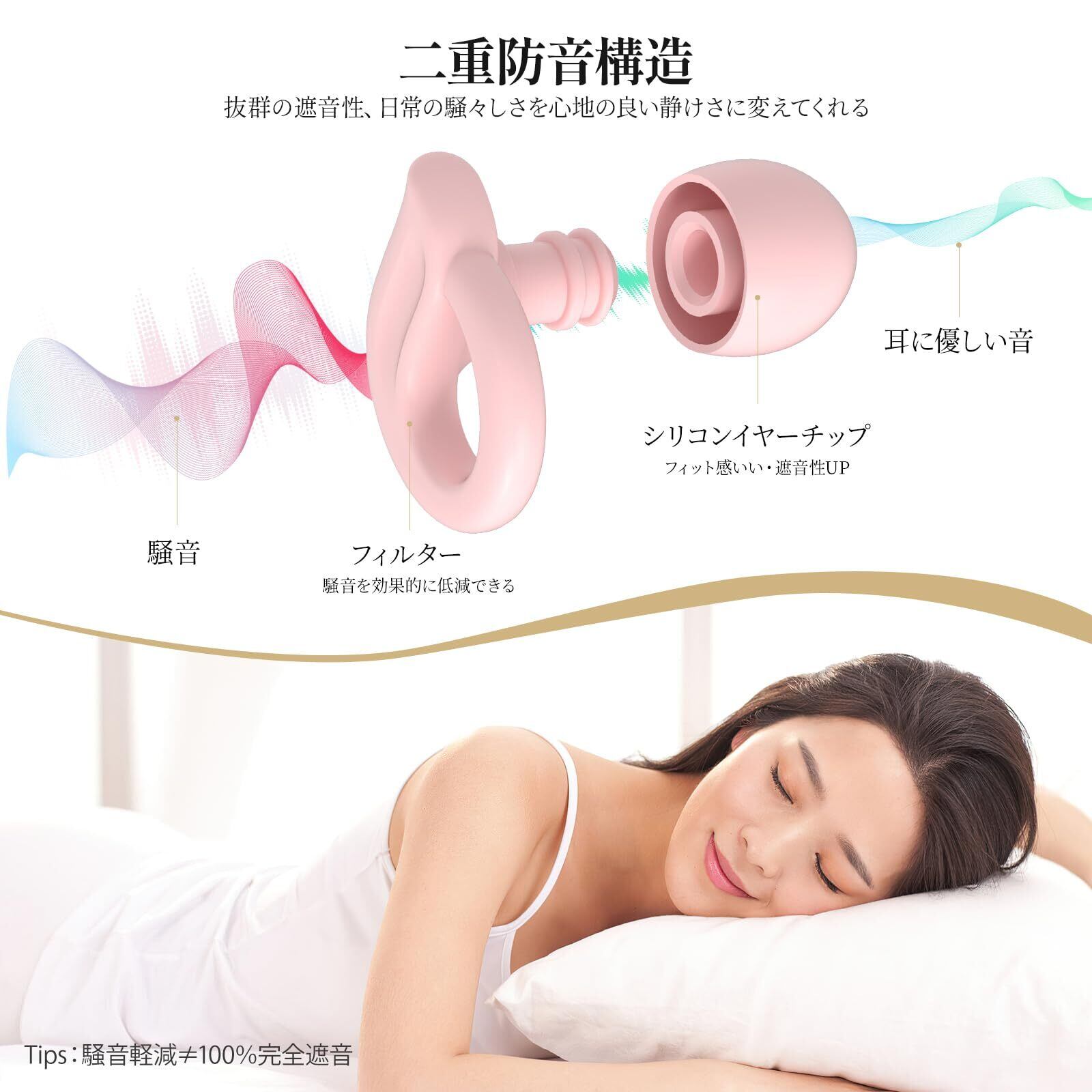 【二重防音構造で遮音性能UP】高遮音性のフィルターとイヤーチップの二重遮音構造で、騒音を効果的に軽減できます。これまでの製品よりも耳栓の遮音性能を向上させ、日常の騒音を心地よい静寂に変えてくれます。※外界音を完全に遮断するのではなく、高い音から低い音まで周囲の音を総合的に低減し、聴覚を保護しながら心地よい睡眠を楽しむ多目的な耳栓です。重要な音やアラーム、異常な音を聞き逃すことはありません。災害時や緊急時にも安心して休むことができます。