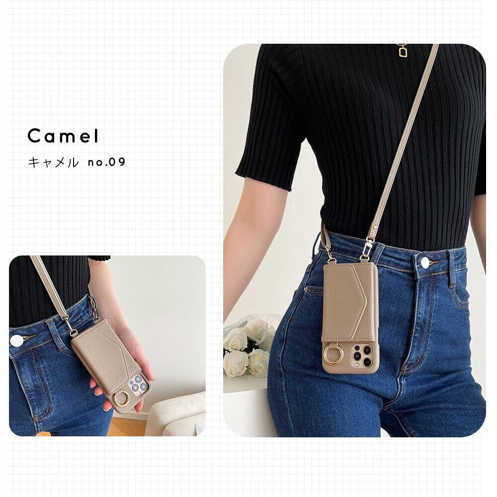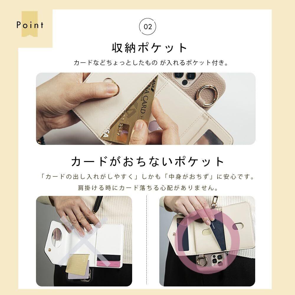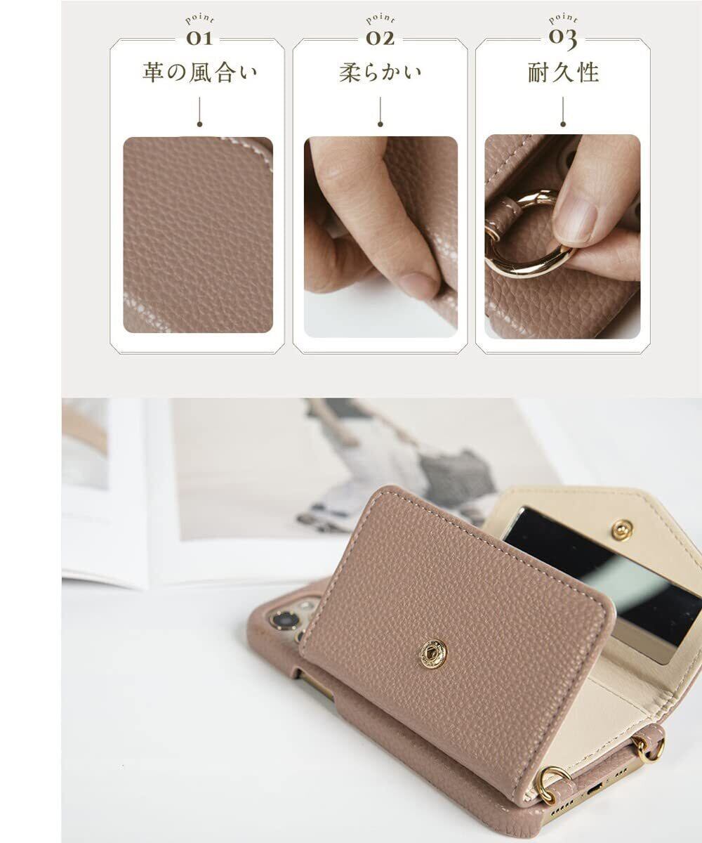 iphone12/iphone12 pro スマホケース ショルダー タイプ 携帯ケース 背面手帳型 背面カード収納 鏡付き 肩掛け 斜めかけ リング付き ミラー付き カード収納 背面ポケット 財布付き マグネットなし レザー ストラップ付き 鏡