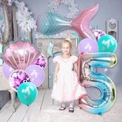 誕生日 飾り付け 数字 バルーン 女の子 5歲 誕生日 バルーン 風船 人魚 マーメイド アルミバルーン パーティー 誕生日 お祝い 風船セット ゴム風船 お誕生日会
