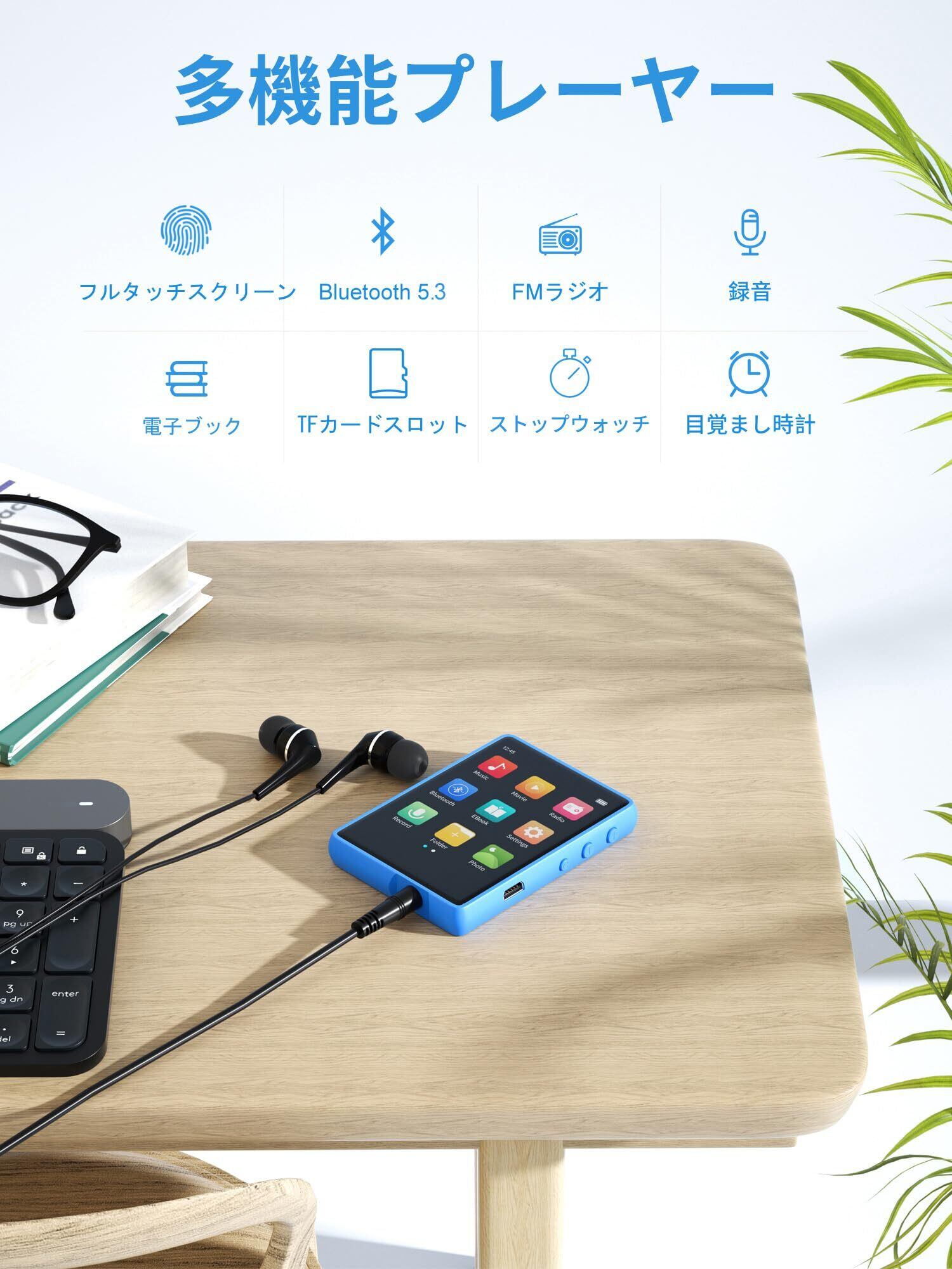 32GB MP3プレーヤー MECHEN Bluetooth 5.3 デジタルオーディオプレーヤー 超軽量 ミニ音楽プレーヤー スピーカー内蔵 2.4インチタッチスクリーン FMラジオ・ダイレクト録音・電子ブック・動画・写真閲覧等の機能搭載 Micro SDカード対応 TELEC認証済み 操作簡単 日本語説明書付き ブルー