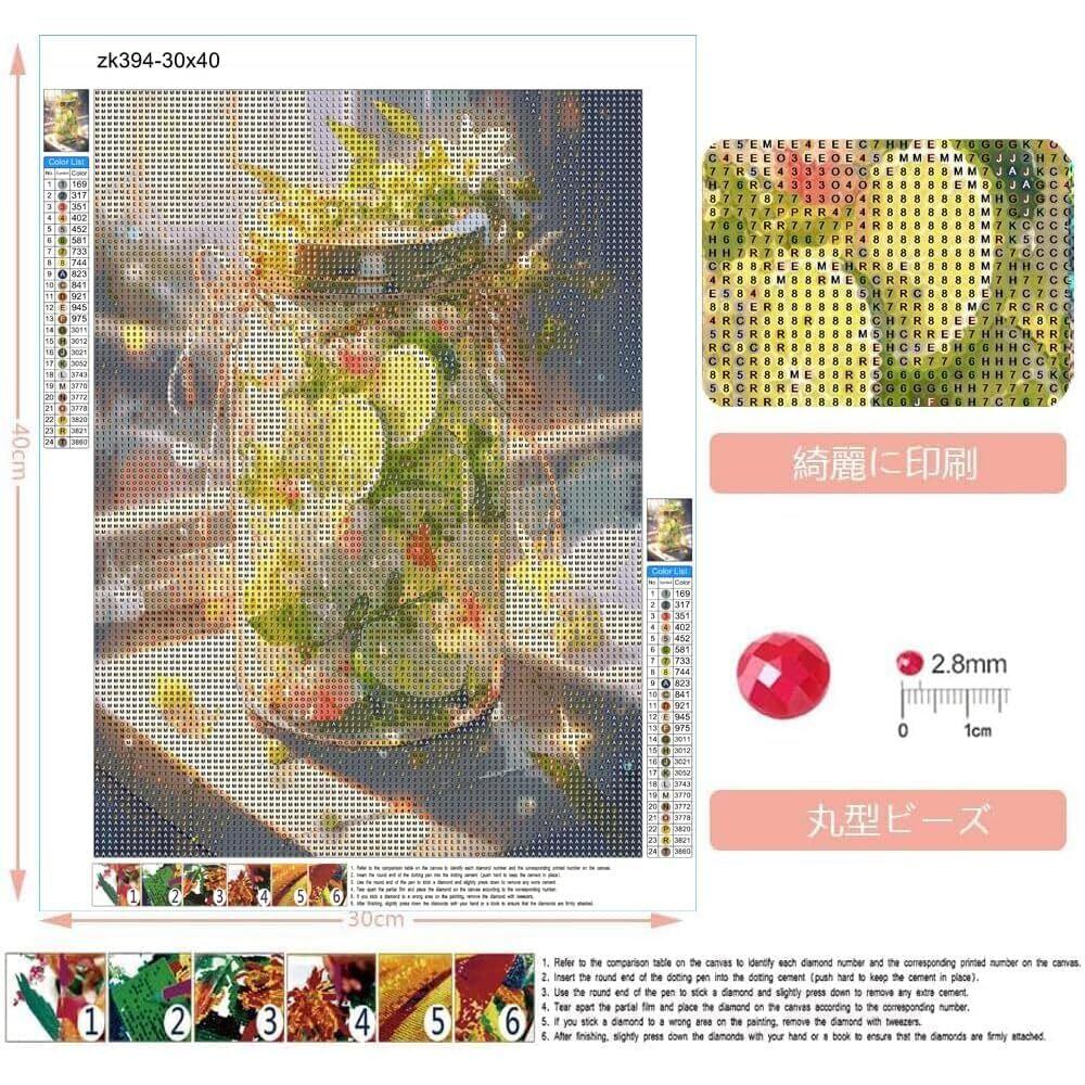 ダイヤモンドアート キット ビーズアート メイソンジャー レモン ビーズ刺しゅう 手芸キット 丸型 全面貼り付け ダイヤモンド刺繍 手芸 手作り ダイヤモンド絵画 初心者 上級者 30x40cm