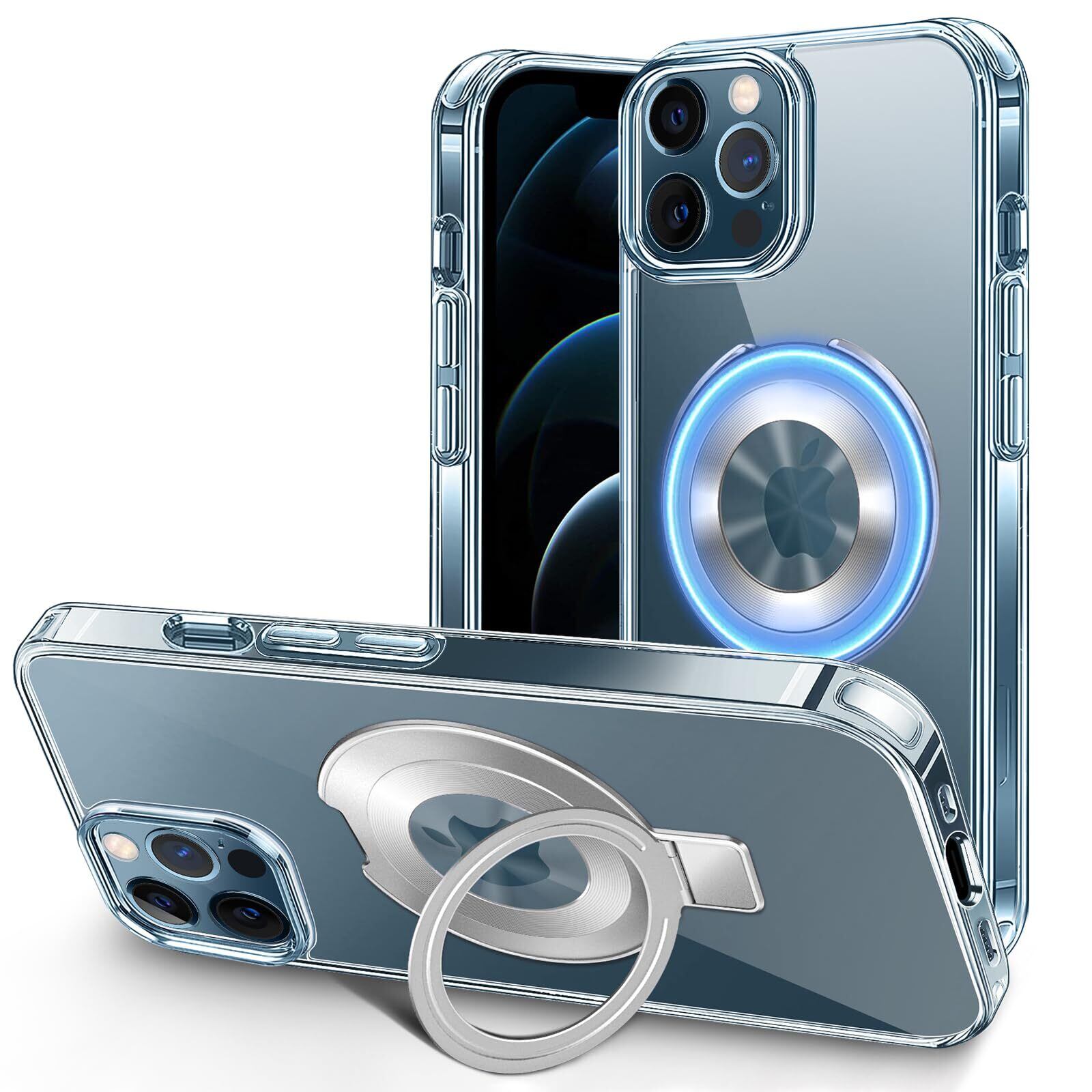 iPhone 12 ケース iPhone 12 Pro カバー MagSafe スタンド一体 リング付き 縦横両対応 スタンド内蔵 ワイアレス充電 アイフォン 12/12 Pro スマホケース クリア