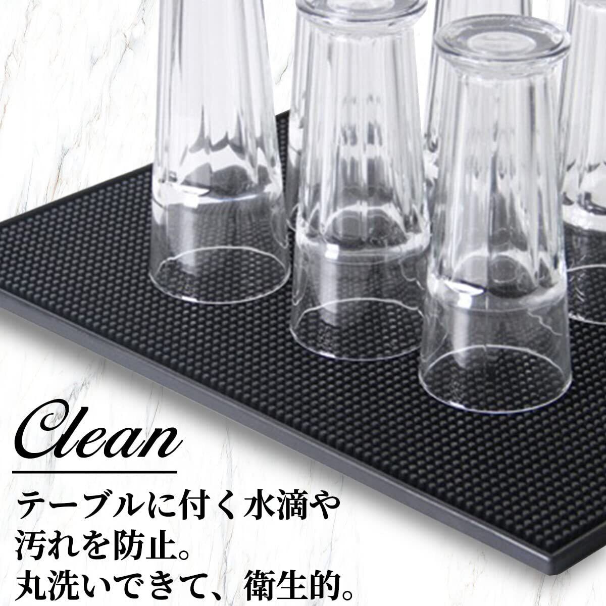 【使いやすいPVC製】マットがテーブルに密着、滑りません。グラスもしっかり安定するのでミキシングが容易です。また余分な水気は突起の間に落ちるので、テーブル水跡や汚れが付くのを防止できます。マットが汚れても丸洗いできるのでお手入れも楽。衛生的で経済的です。