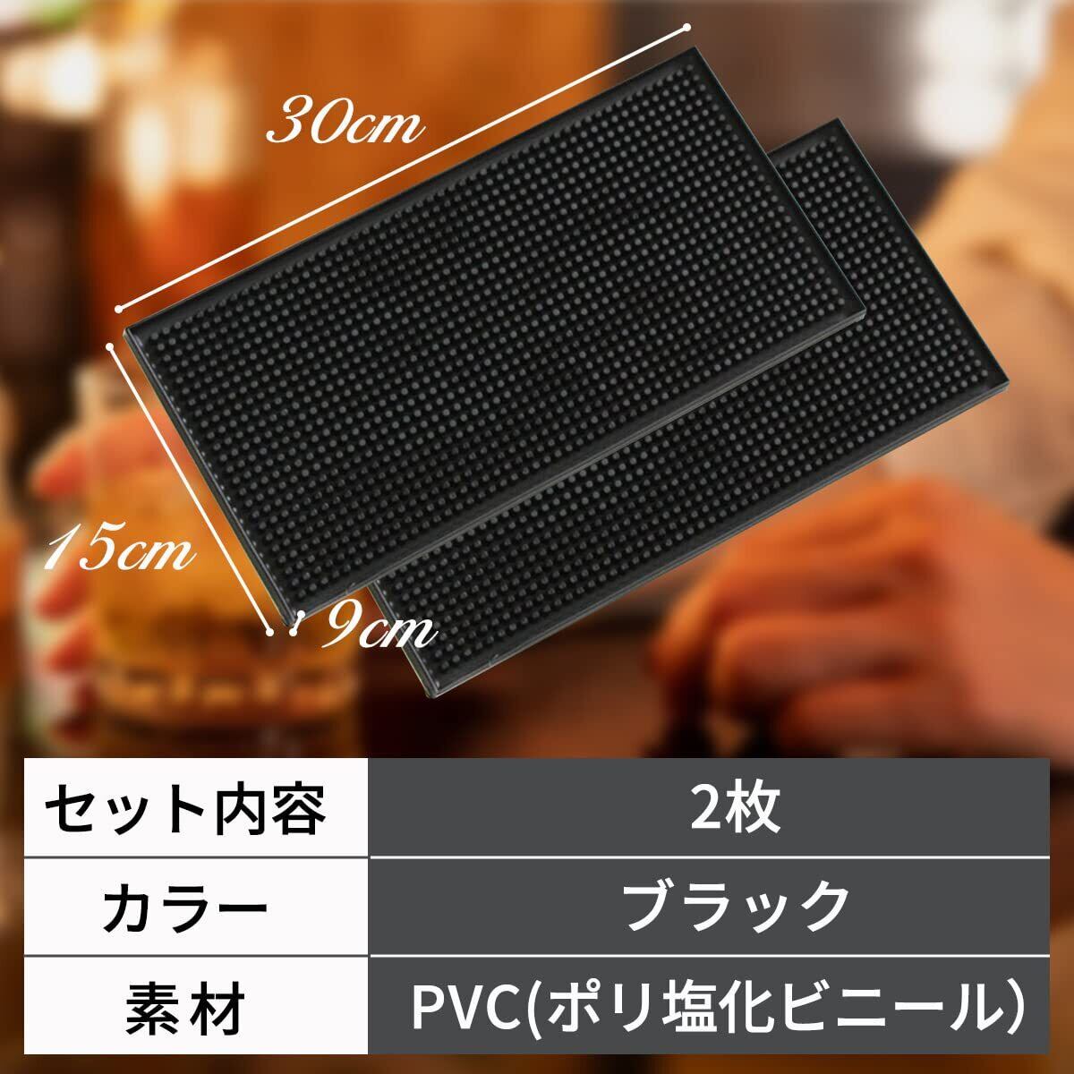 水切りマット グラスマット バーカウンター マット 15x30cm 2枚セット (ブラック/15X30cm)