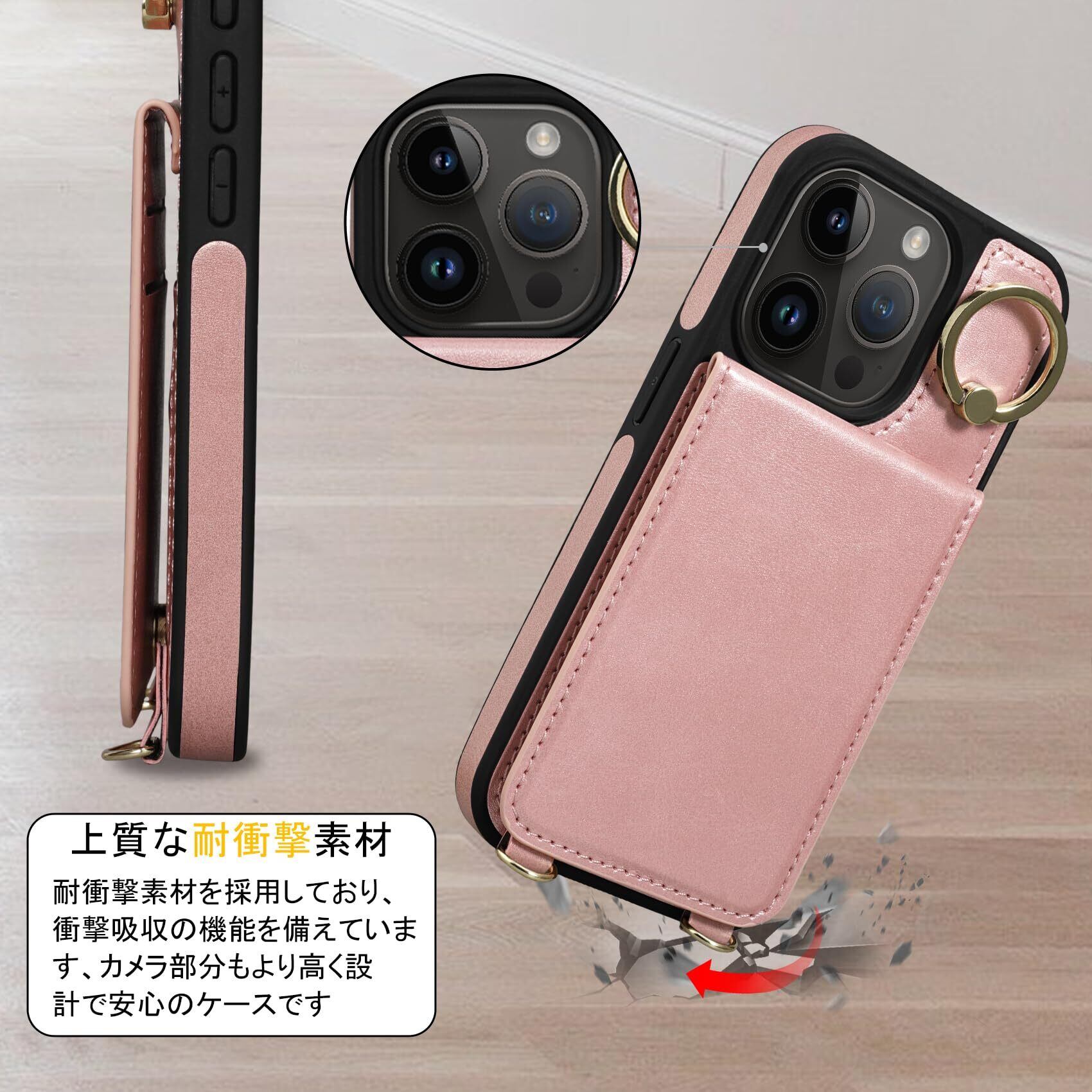 iPhone 15 Pro 用 ケース 背面 手帳型 カードケース 手帳型ケース iPhone15 Pro 用 スマホケース iPhone 15Pro 用 ショルダー ストラップ 背面ケース Shlybaay 肩掛け カード収納 スタンド 斜め掛け 首掛け PUレザー マグネット アイホン 15 プロ 用 可愛い 人気 おしゃれ アイフォン 15 ぷろ 用 6.1inch対応 ピンク