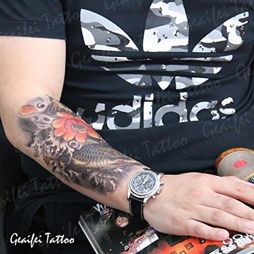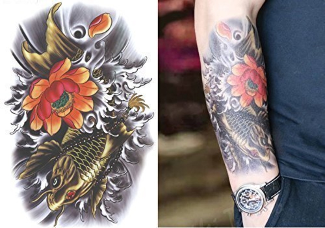 【タトゥーシール】 大きめサイズ金の鯉、蓮の花 防水 刺青 入れ墨