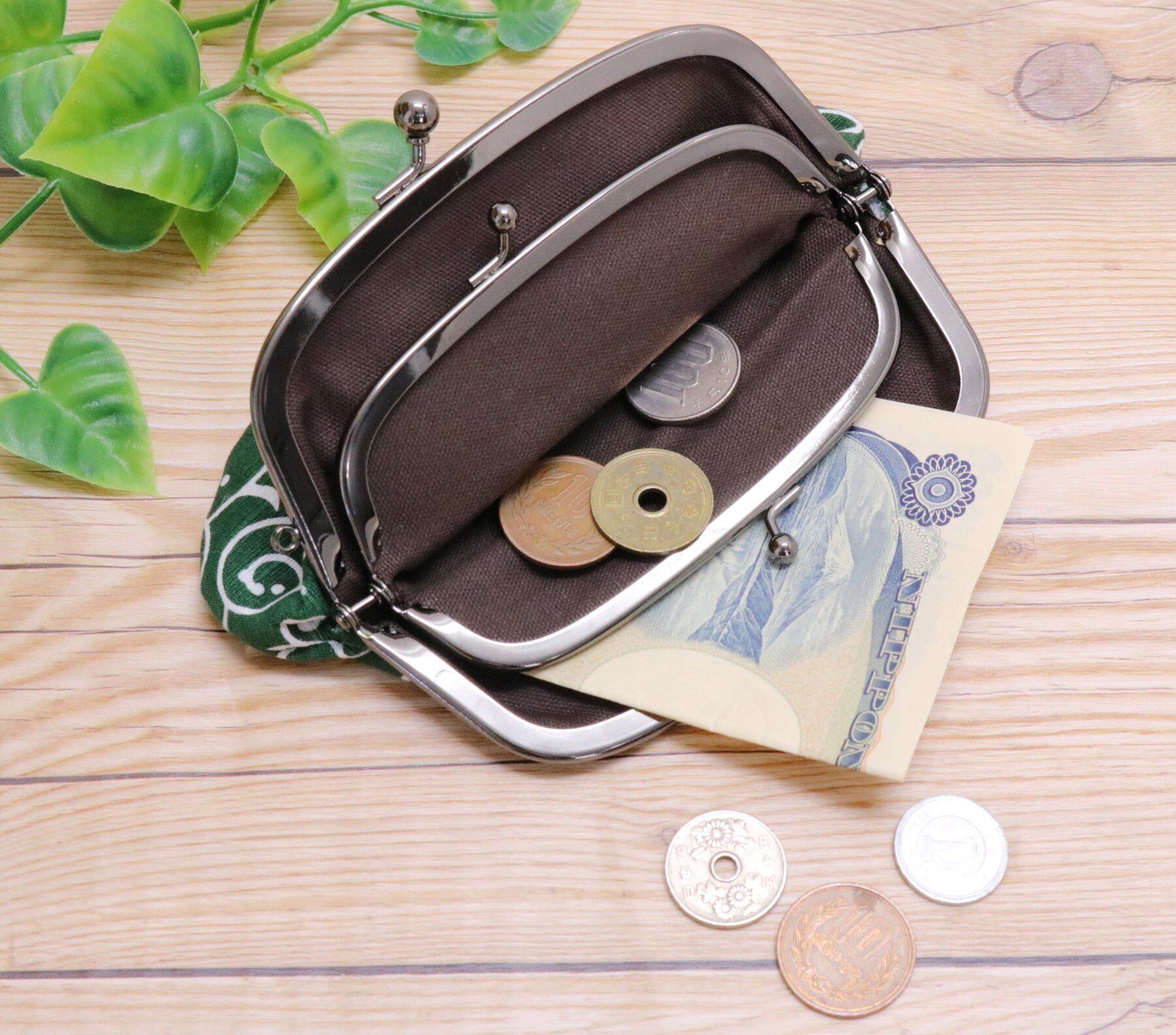 京佑(Kyoyu) 財布 親子がま口 ドット唐草 緑