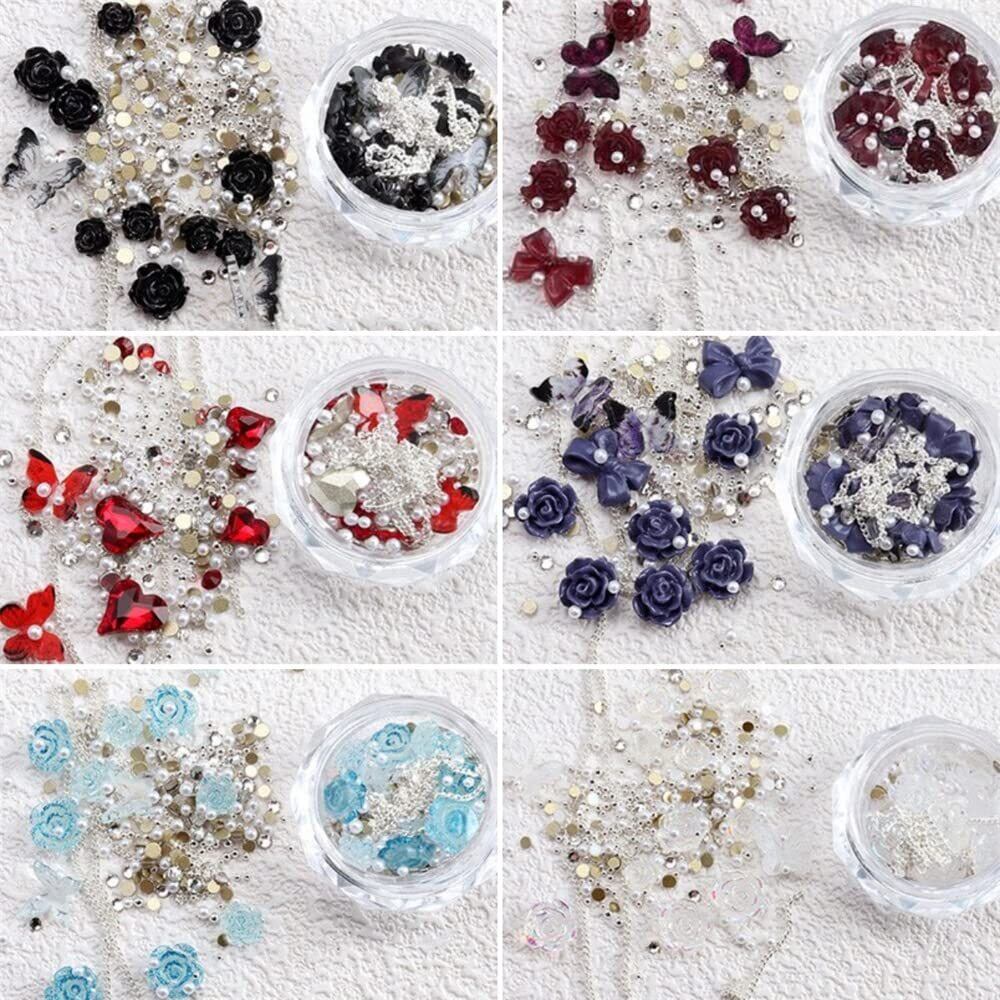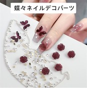 ネイルパーツ 蝶々 花 6ケース ネイルデコパーツ パール リボン ラインストーン ビーズ 蝶 立体 DIY ネイル用 チェーン 3D バタフライ ネイルアートパーツ 蝶型 おしゃれ