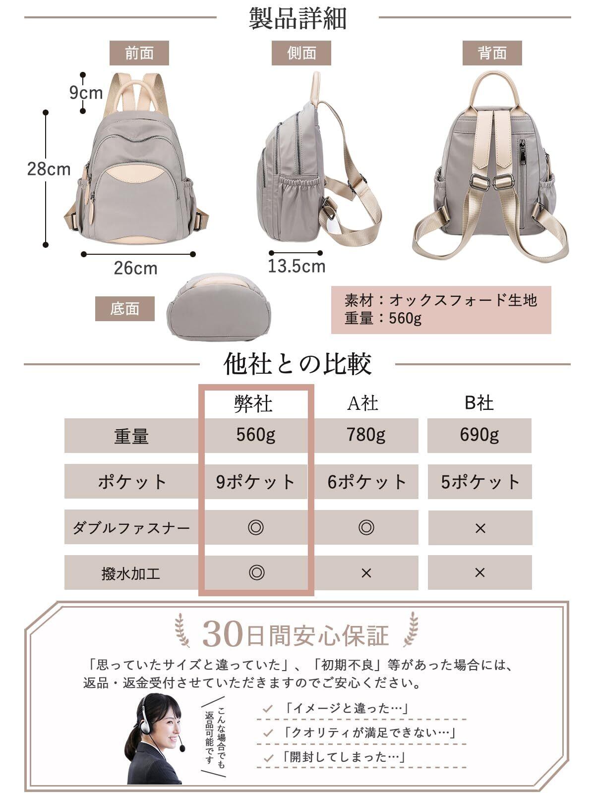 大人 かわいい 小さめ リュック。収納力に優れた9ポケットでメインポケットはダブル ファスナーを採用しているので使い勝手が抜群です。使いやすさにこだわりがある キレイめ の レディース リュック。上質なナイロン製オックスフォード素材を採用。女性への プレゼントにも喜ばれること間違いなしです。 ビジネス リュックとして通勤にも使えます。