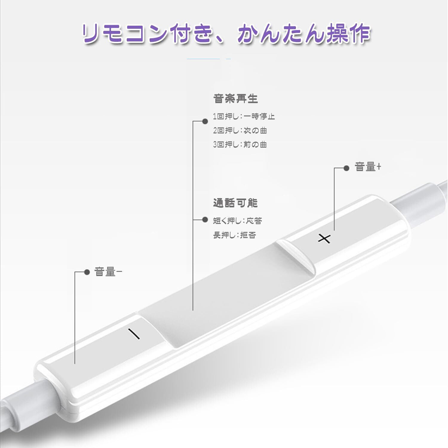 【リモコン付き・多機能実現】有線イヤホンの端子は表裏両方に挿入できるCタイプコネクタなので、差し込みやすくて便利です。コードにリモコンがつき、音楽再生|一時停止|音量を上げる/下げる|電話応答/電話拒否|曲切替など全ての機能がワンタッチでかんたんに操作可能です。