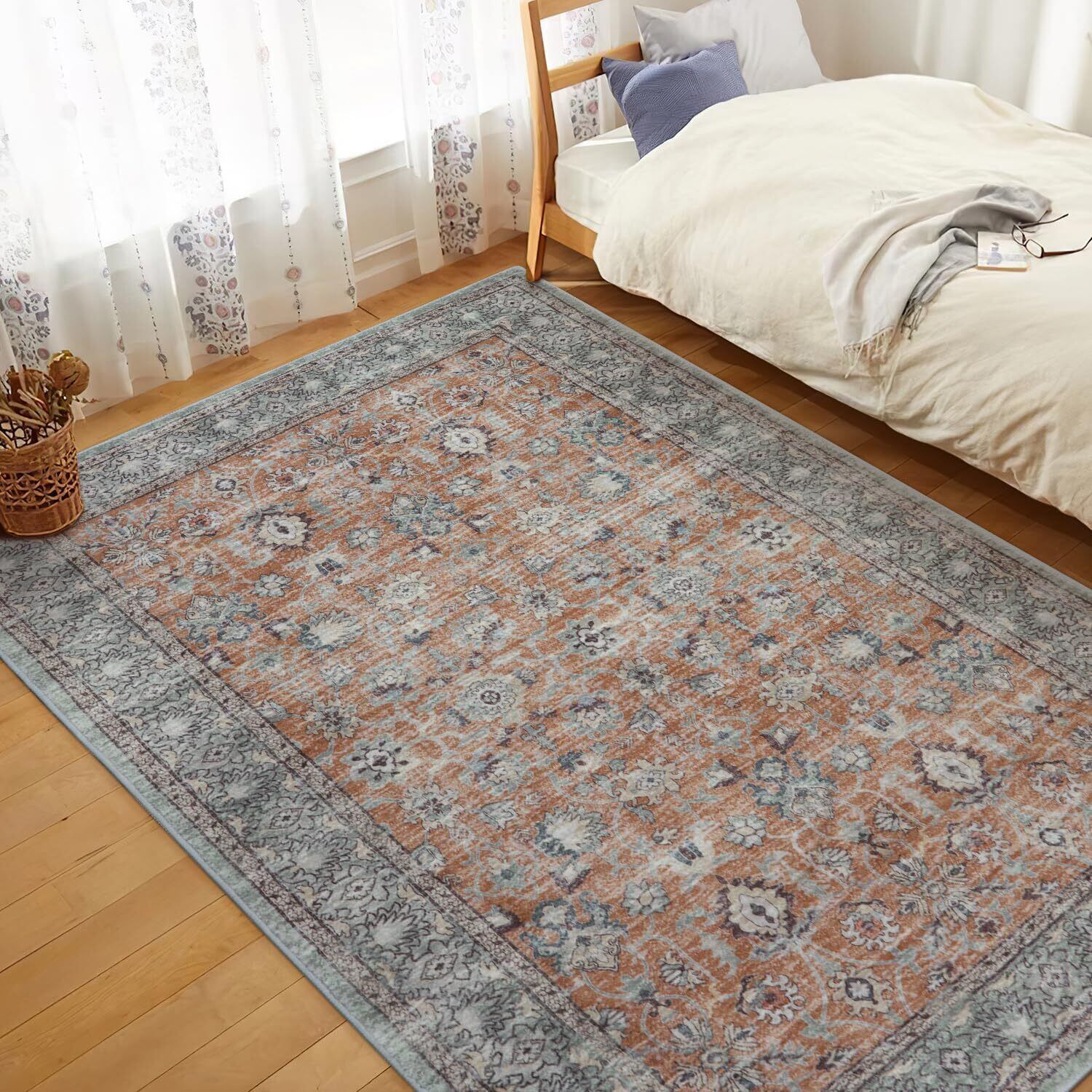 HAOCOO ラグ カーペット 洗える 140×200cm ホットカーペット対応 絨毯 ペルシャ風 ラグマット 1.5畳 ふわふわ おしゃれ オールシーズン適用 滑り止め 防ダニ 防臭 軽量 防音マット 室内用 デスクマット ダイニングマット アンティーク 花柄