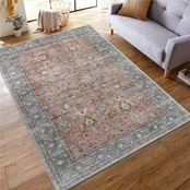 【柔らかなペルシャ風ラグ】ぎっしりと編みこまれた毛が、触れる度に心地よい癒しに感触を生み出します。明暗の変化のあるレトロオレンジが花や蔓の模様と組み合わされて、趣のあるヴィンテージスタイルのラグを作り出しています。ファブリックや深みのあるウッド素材のアイテムと合わせれば、リビングルームを温かな空気感で包んでくれそうです。