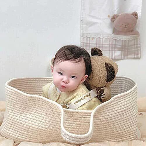 乳児用バスケット ベビーかご 赤ちゃん 退院 シンプル 綿100 ゆりかご メイズバスケット 添い寝ベッド ベビーベッド だっこふとん 乳児用キャリアポータブルクレードルスリーピングバスケット 新生児用ハンドバスケット オムツ替え お昼寝マット 風を防ぐ 丈夫 出産祝い 贈り物 (ベージュ)