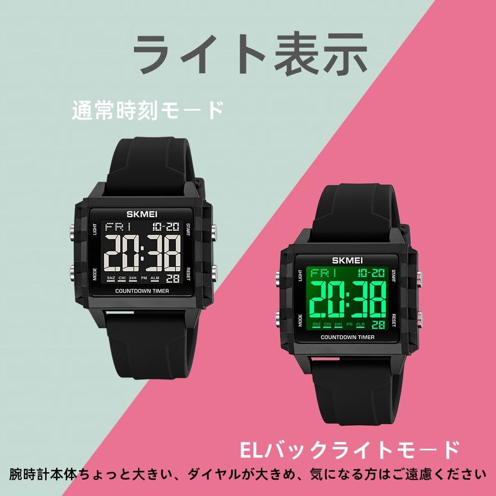 Datirzyx(ダティアシー)大文字 デジタル腕時計 メンズ 夜でも見やすい時計 多機能ウォッチ 四角形 スポーツウォッチ 防水うで時計 仕事時計 led watch 日本電池採用 日本語説明書付 (ブラック+ブラック)