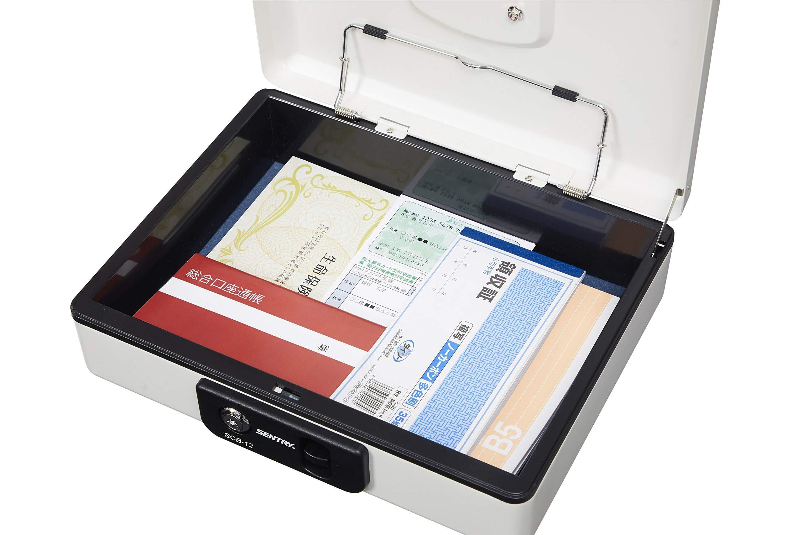 SENTRY (セントリー) 金庫 手提げ金庫 小型 キャッシュボックス 収納ボックス 鍵付き B5 キーロック コインケース ワンタッチオープン ライトグレー SCB-12
