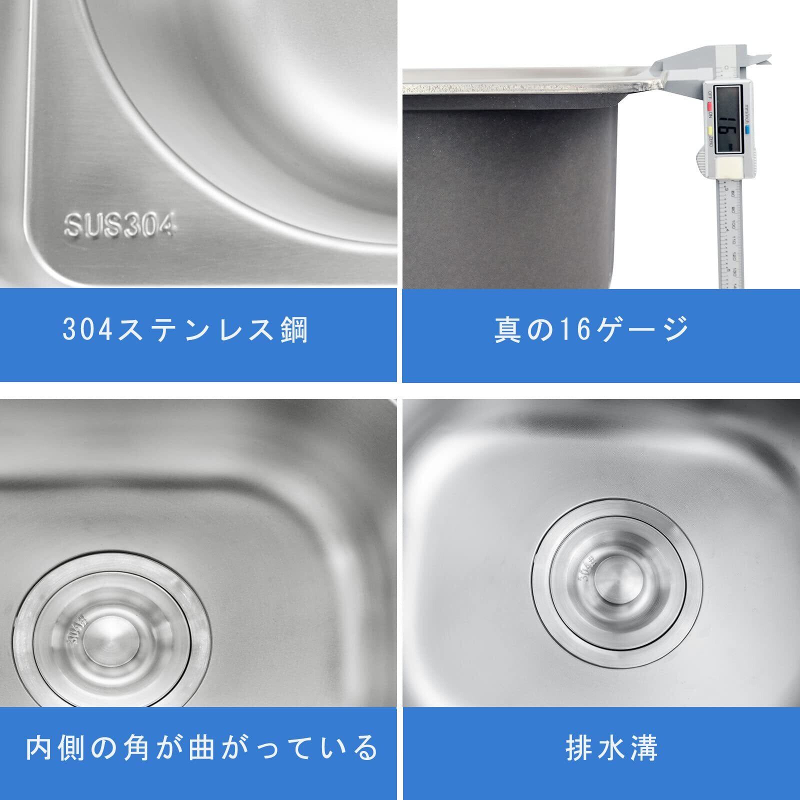 【付属品】排水管ホース・小型ゴミ受け付き(画像ご参照下さい) 。【性能】アンチノイズマット(静音効果)シンク一体(溶接なし防水性能up)。