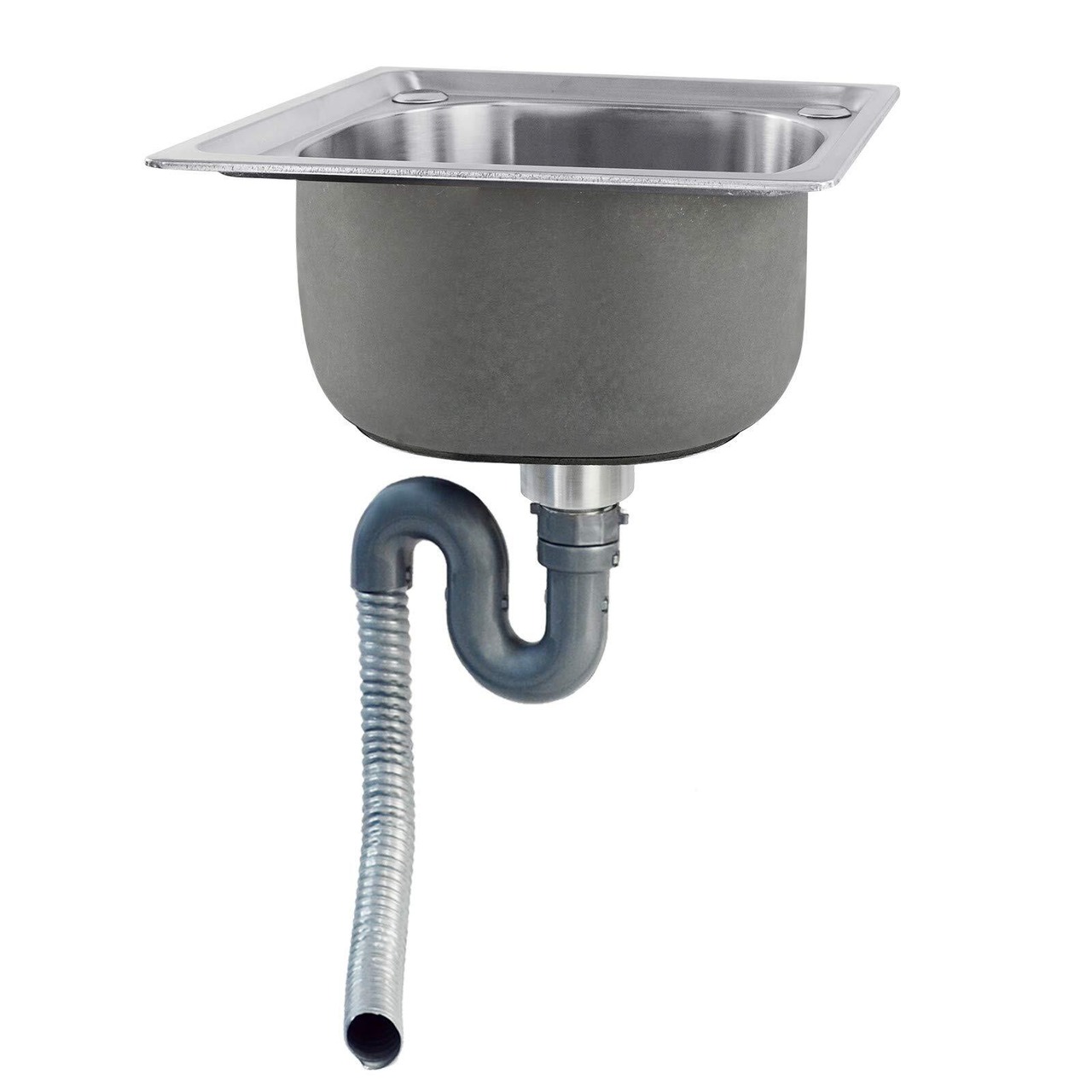 AKOZLIN 簡易流し台 304ステンレス製 キッチンシンク 流し台 ガーデンシンク ゴミ受け 排水配管 シングルシンク 家庭用 台所 屋内 屋外 工場 農園 洗い物 に 便利BBQ アウトドアに適用 錆びず 簡単取付 DIYに最適 幅38*奥行32*高さ18.5cm