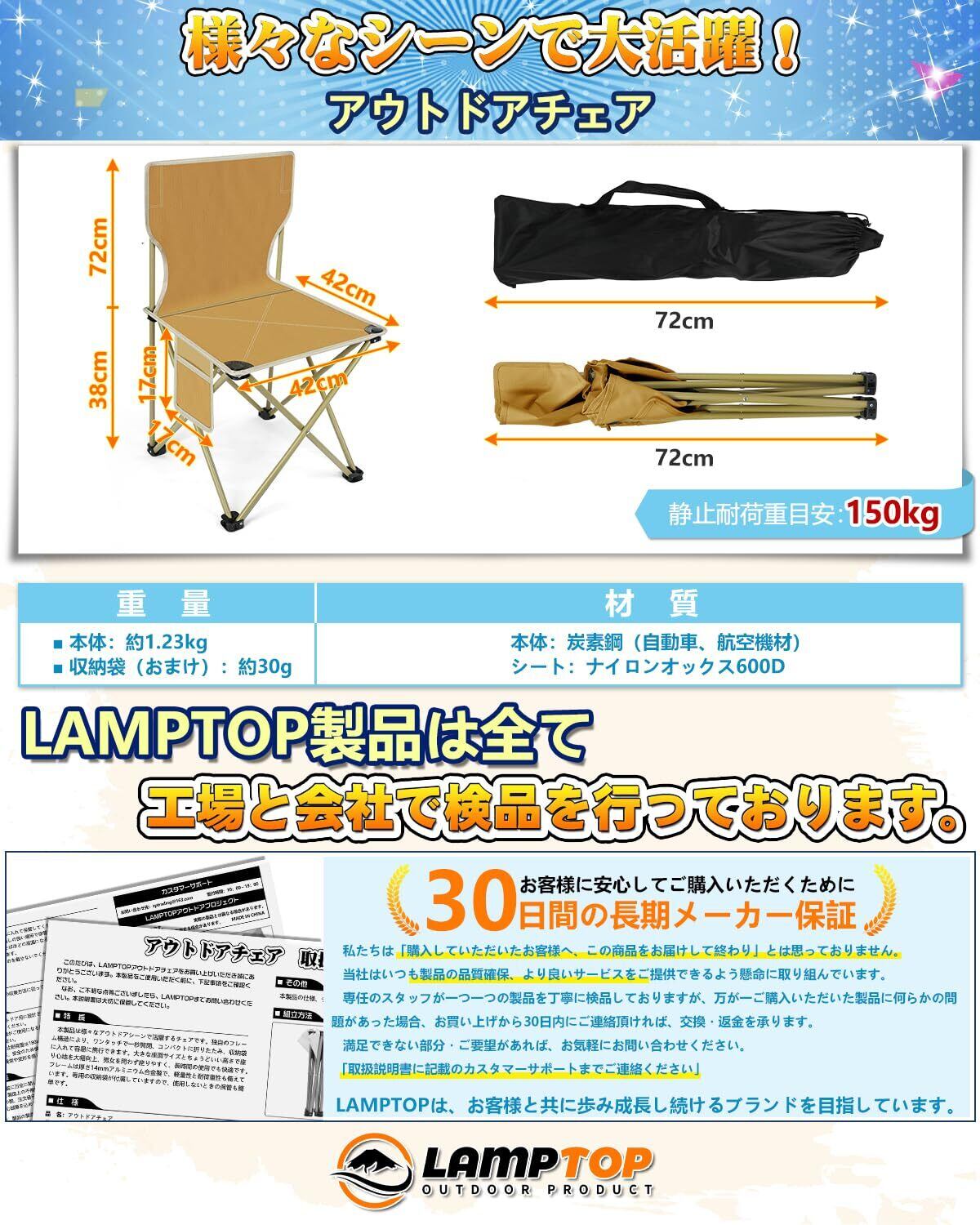 【一秒開閉】LAMPTOPアウトドアチェア 背もたれ 折りたたみ椅子 軽量 コンパクト イス キャンプ椅子 耐荷重150kg 高さ38cm 収納袋付き 携帯便利 釣り ゴルフ観戦 運動会 お花見 キャンプ (ブラック)