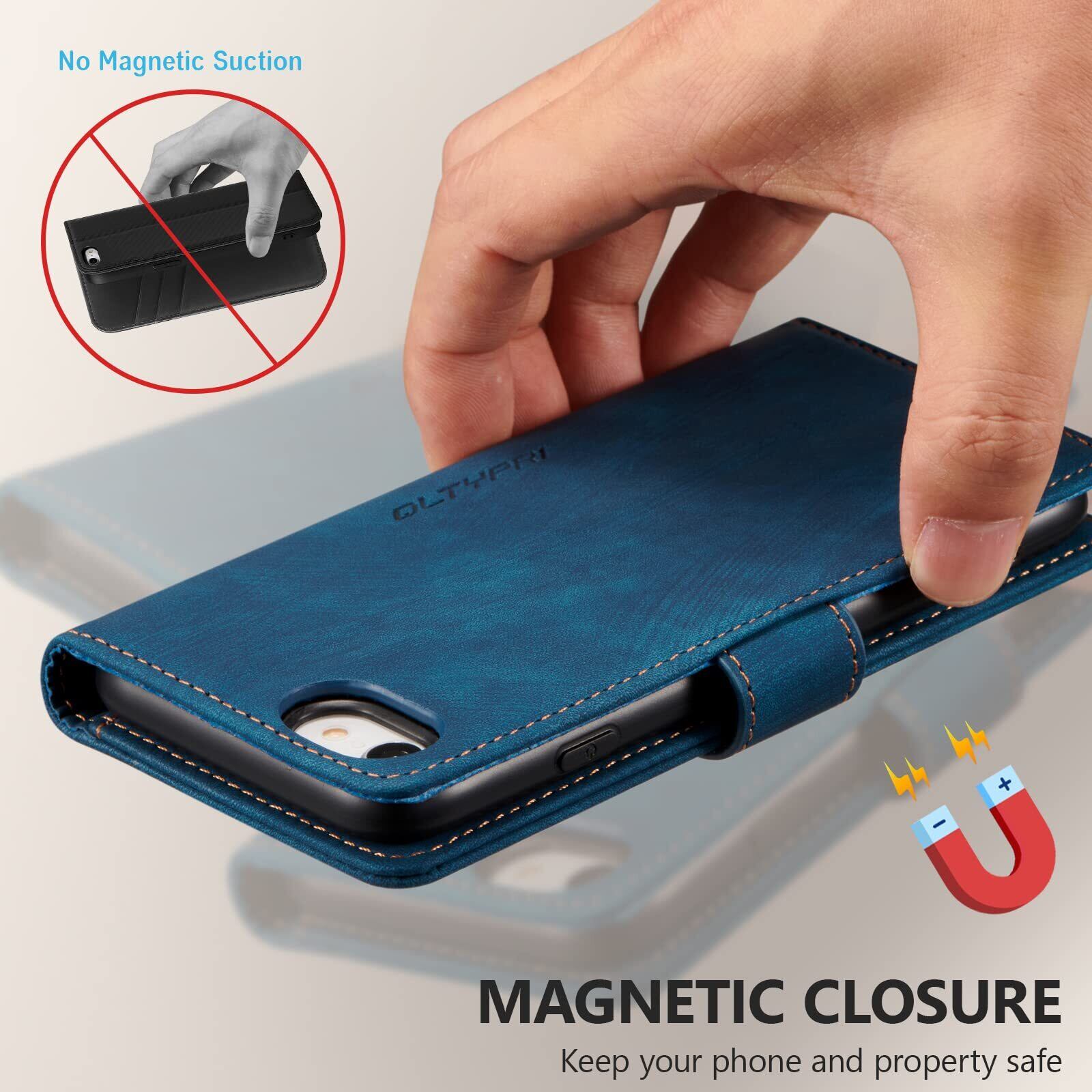 QLTYPRIiPhone SE ケース 第3世代 2022 5G/iPhone SE ケース 第2世代 iPhone7用ケース iPhone8用 ケース 手帳型 ケース 上質PUレザー アイフォン7/8/SE2/SE3 手帳型 携帯カバー カード収納 スタンド機能付き マグネット式 軽量薄型 手触りが良い 耐衝撃 全面保護 ケースiPhone 7/8/SE2/SE3対応4.7inch,ブルー