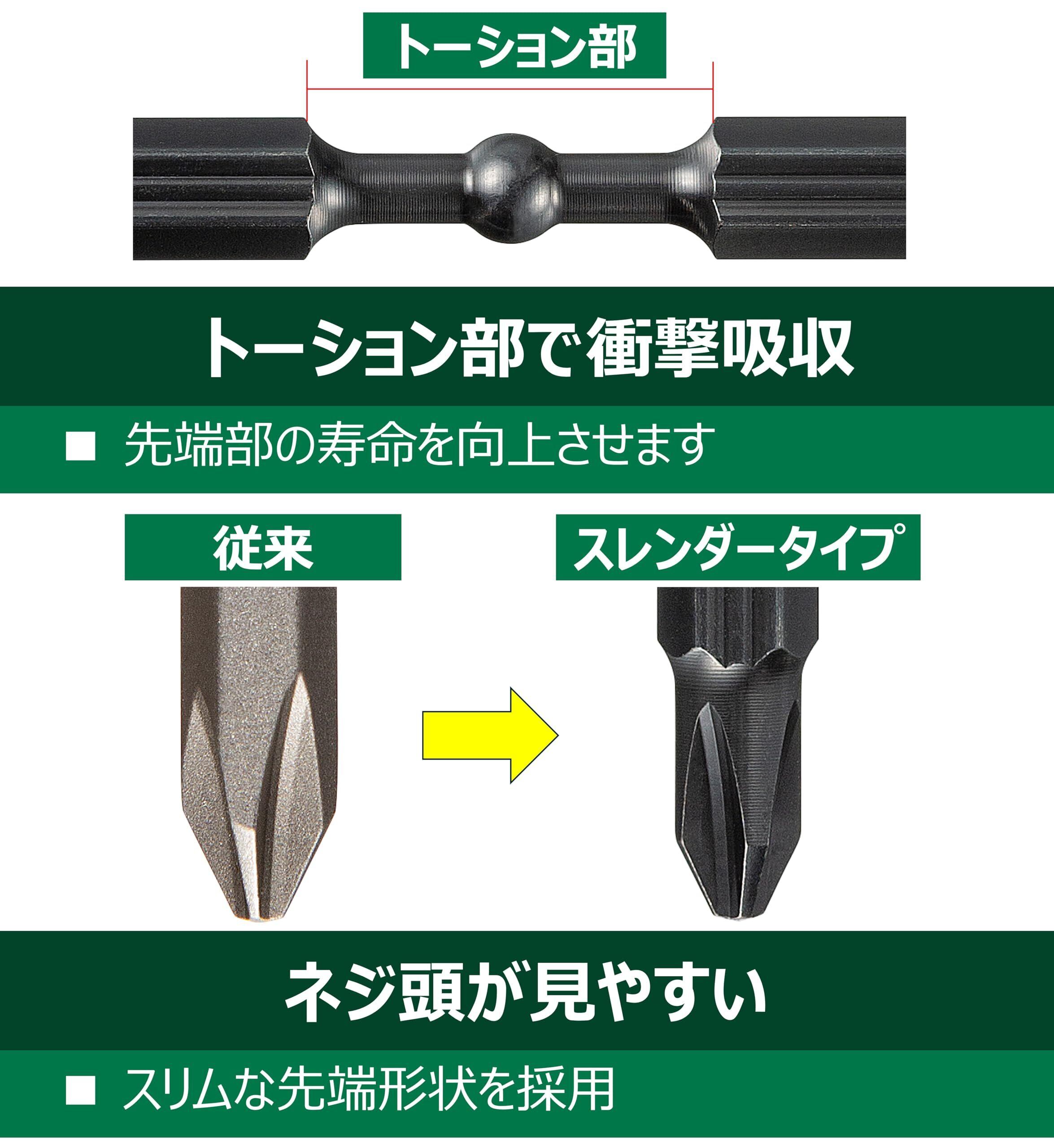 HiKOKI(ハイコーキ) トーションビット「力こぶ」スレンダー No.2×110L (5入) 0033-5702